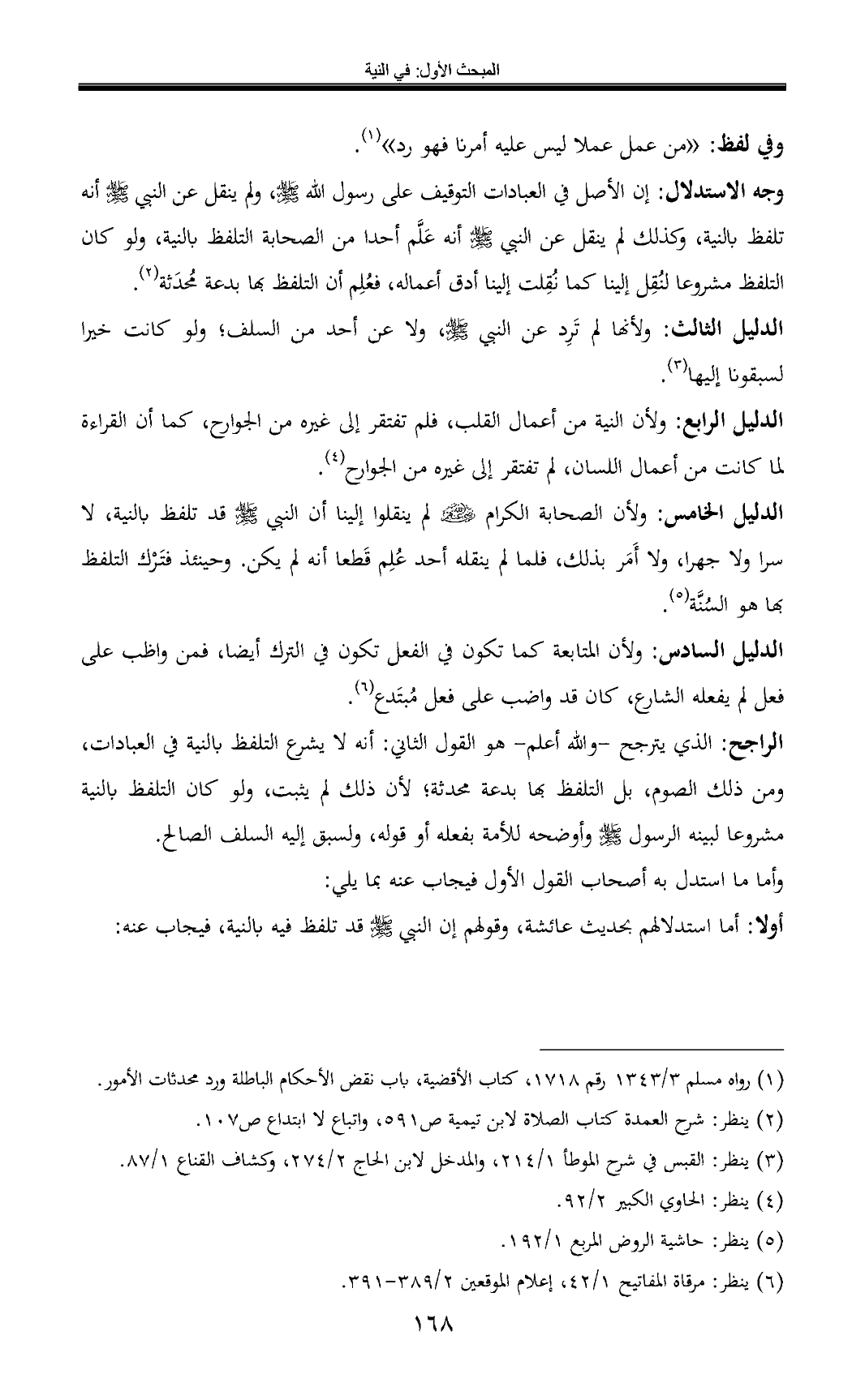 (¬6) ينظر: مرقاة المفاتيح 1/ 42، إعلام الموقعين 2/ 389 - 391.