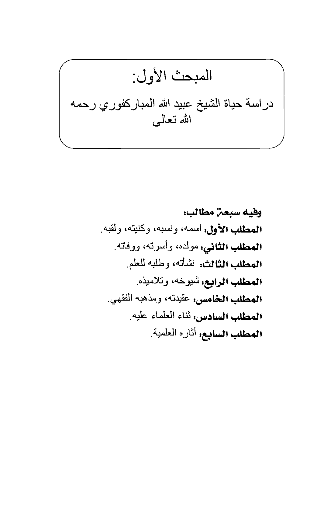 المبحث الأول: دراسة حياة الشيخ عبيد الله المباركفوري رحمه الله تعالى