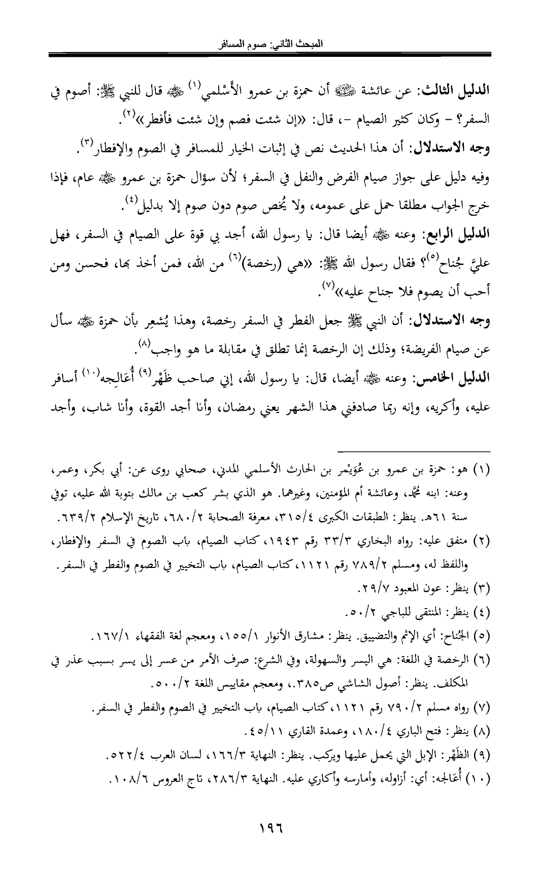 الدليل الخامس: وعنه - رضي الله عنه - أيضا, قال: يا رسول الله، إني صاحب ظَهْر (¬9) أُعَالِجه (¬10) أسافر عليه، وأكريه، وإنه ربما صادفني هذا الشهر يعني رمضان، وأنا أجد القوة، وأنا شاب، وأجد