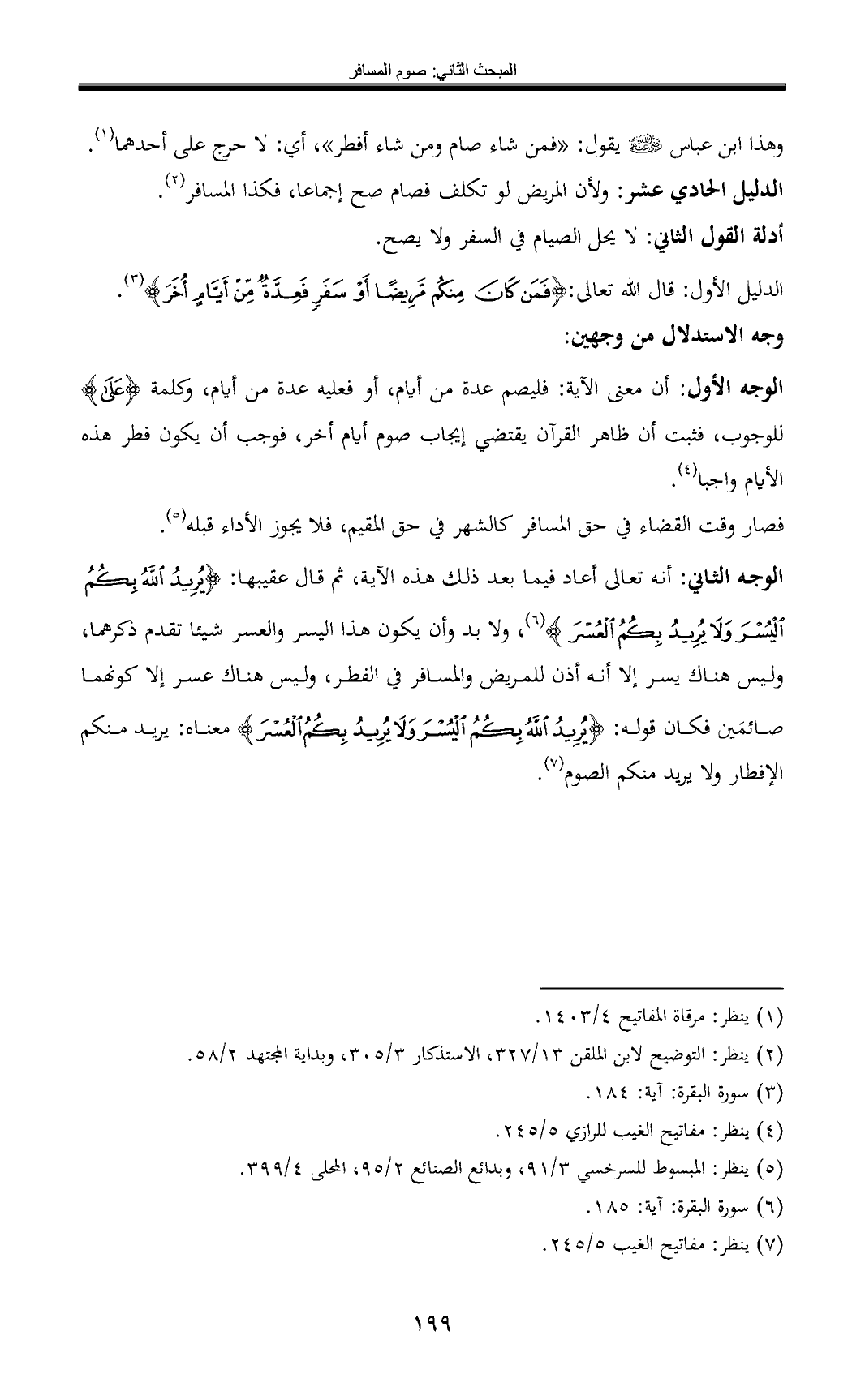 الدليل الأول: قال الله تعالى: {فَمَنْ كَانَ مِنْكُمْ مَرِيضًا أَوْ سَفَرٍ فَعِدَّةٌ مِنْ أَيَّامٍ أُخَرَ} (¬3).