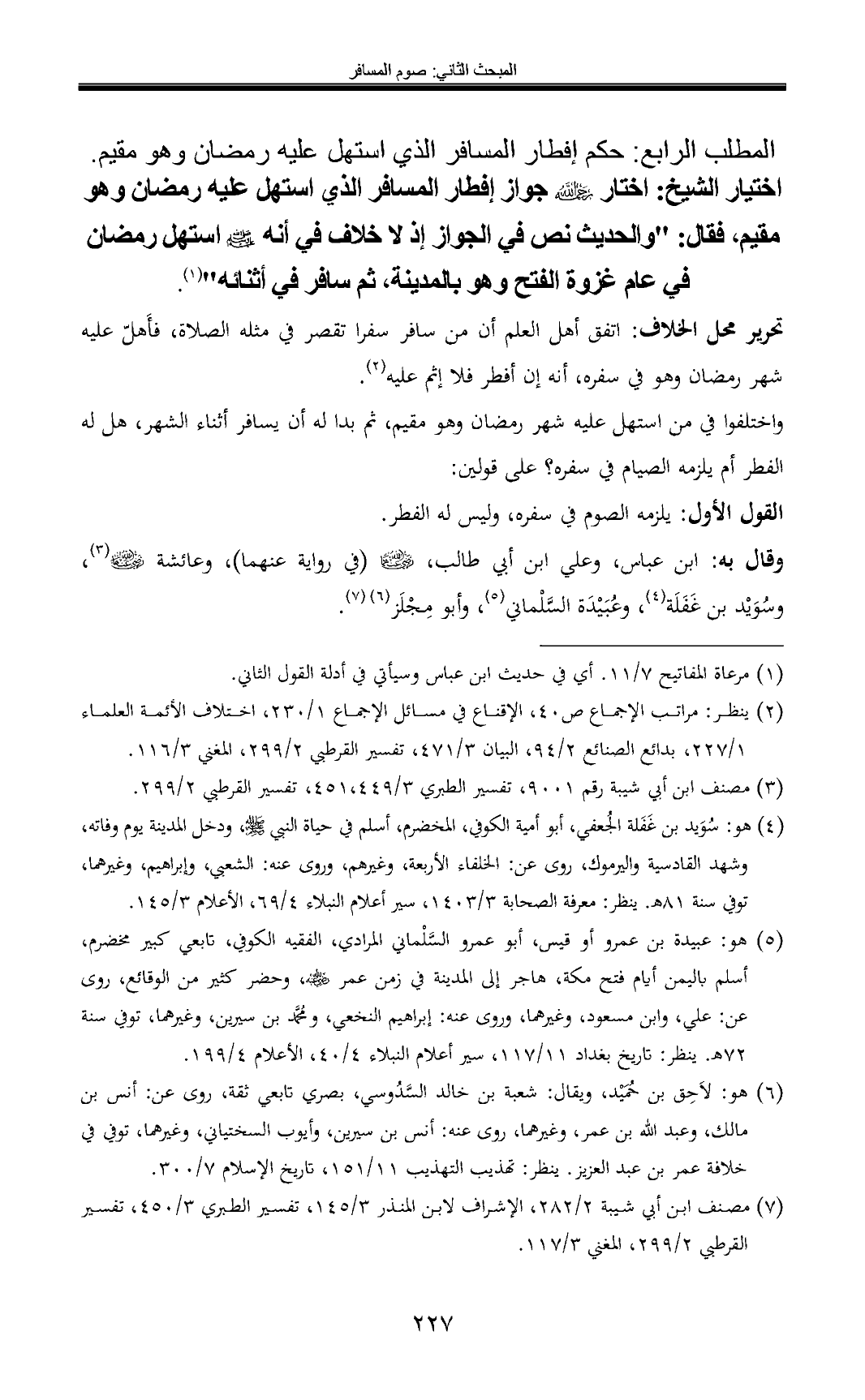 (¬7) مصنف ابن أبي شيبة 2/ 282، الإشراف لابن المنذر 3/ 145، تفسير الطبري 3/ 450، تفسير القرطبي 2/ 299، المغني 3/ 117.