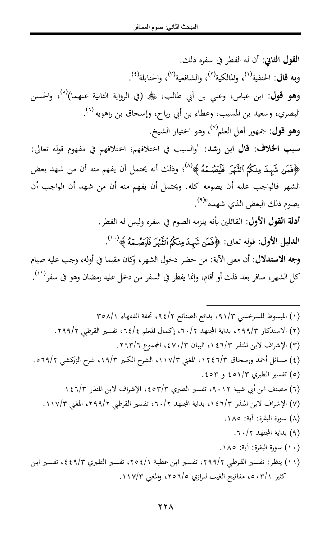 (¬7) الإشراف لابن المنذر 3/ 146، بداية المجتهد 2/ 60، تفسير القرطبي 2/ 299، المغني 3/ 117.