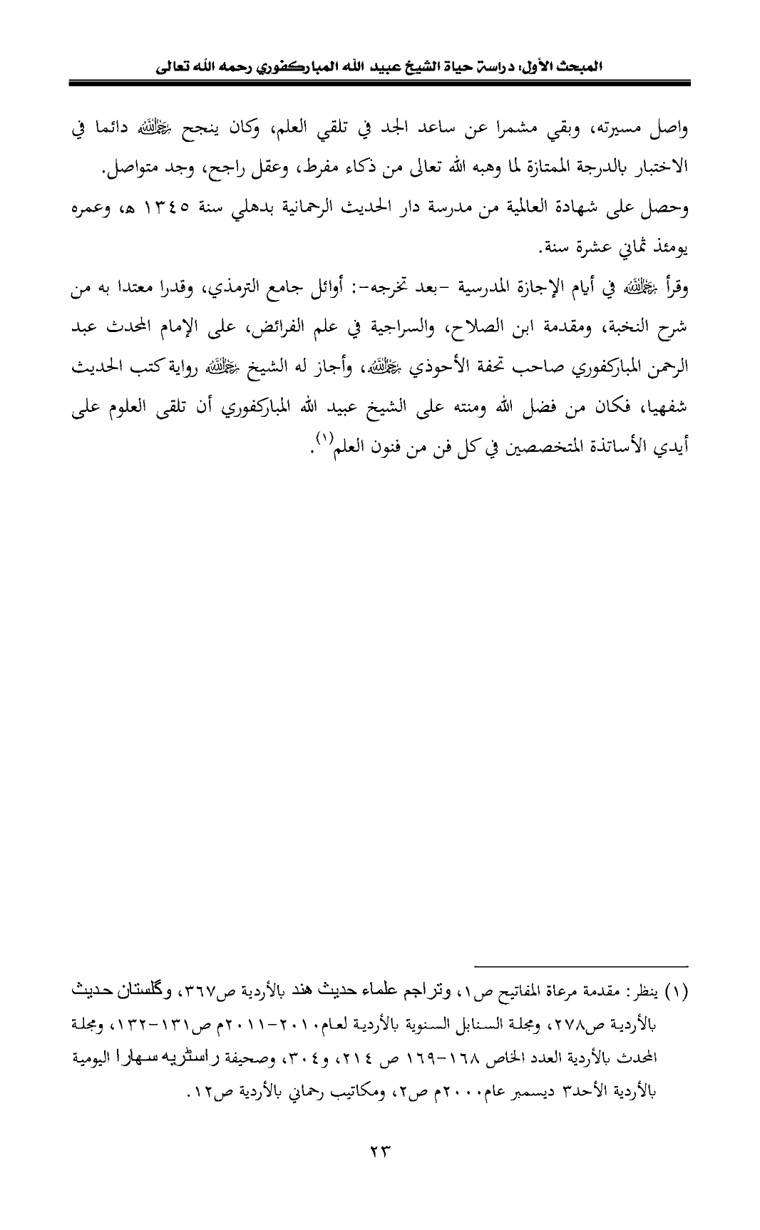 (¬1) ينظر: مقدمة مرعاة المفاتيح ص 1, وتراجم علماء حديث هند بالأردية ص 367, وگلستان حديث بالأردية ص 278, ومجلة السنابل السنوية بالأردية لعام 2010 - 2011 م ص 131 - 132, ومجلة المحدث بالأردية العدد الخاص 168 - 169 ص 214, و 304, وصحيفة راسٹريه سهارا اليومية بالأردية الأحد 3 ديسمبر عام 2000 م ص 2, ومكاتيب رحماني بالأردية ص 12.