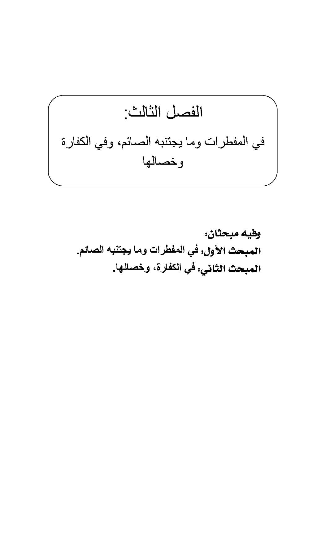 الفصل الثالث: في المفطرات وما يجتنبه الصائم، وفي الكفارة وخصالها