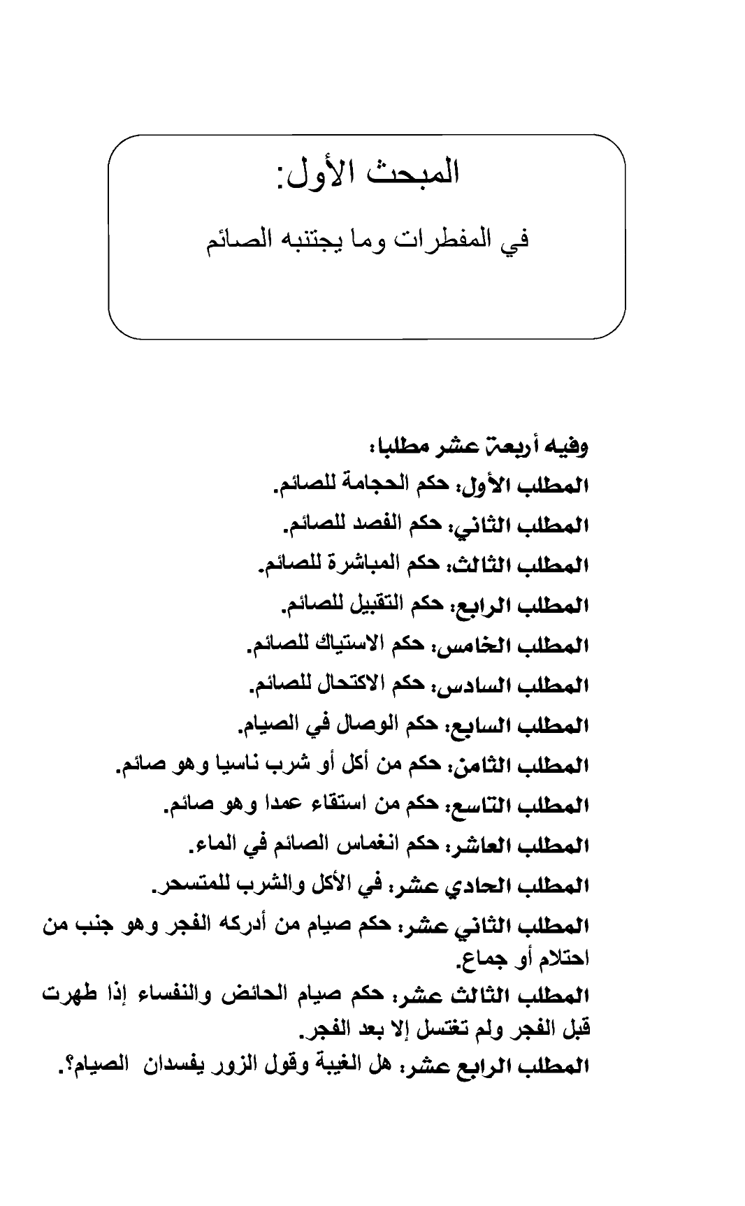 المبحث الأول: في المفطرات وما يجتنبه الصائم