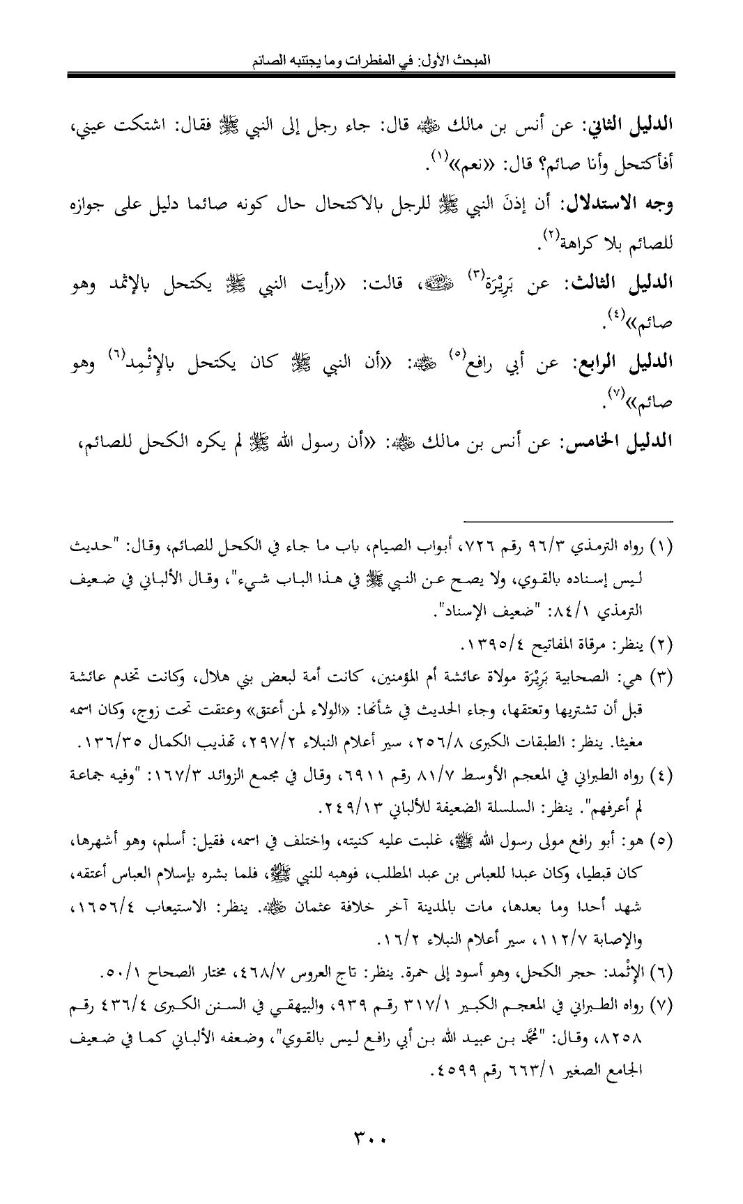 الدليل الرابع: عن أبي رافع (¬5) - رضي الله عنه -: «أن النبي - صلى الله عليه وسلم - كان يكتحل بالإِثْمِد (¬6) وهو صائم» (¬7).
