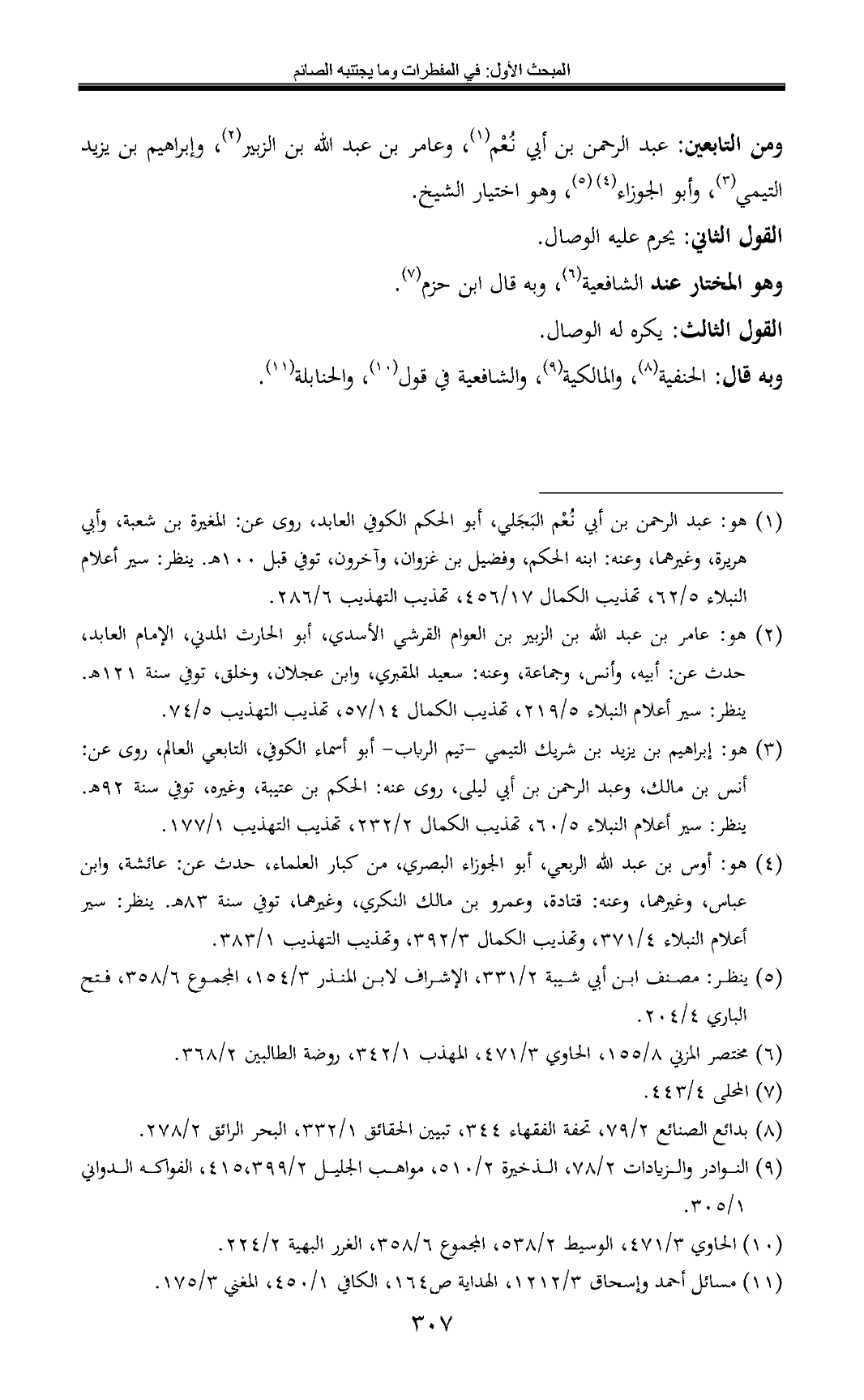(¬5) ينظر: مصنف ابن أبي شيبة 2/ 331, الإشراف لابن المنذر 3/ 154, المجموع 6/ 358، فتح الباري 4/ 204.