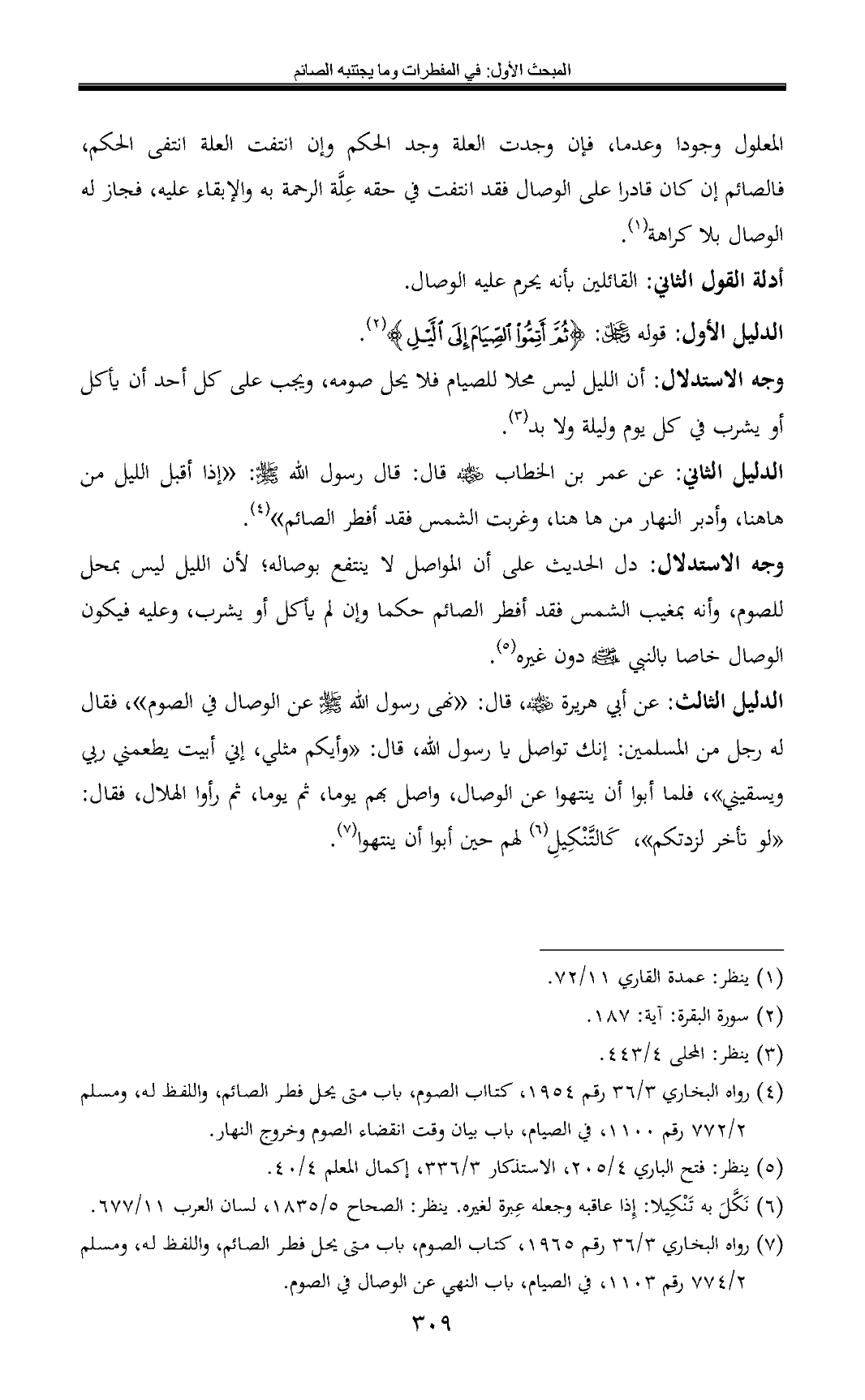 (¬7) رواه البخاري 3/ 36 رقم 1965, كتاب الصوم, باب متى يحل فطر الصائم, واللفظ له, ومسلم 2/ 774 رقم 1103, في الصيام, باب النهي عن الوصال في الصوم.