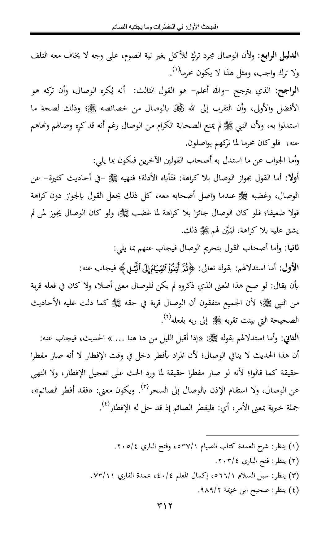(¬1) ينظر: شرح العمدة كتاب الصيام 1/ 537, وفتح الباري 4/ 205.