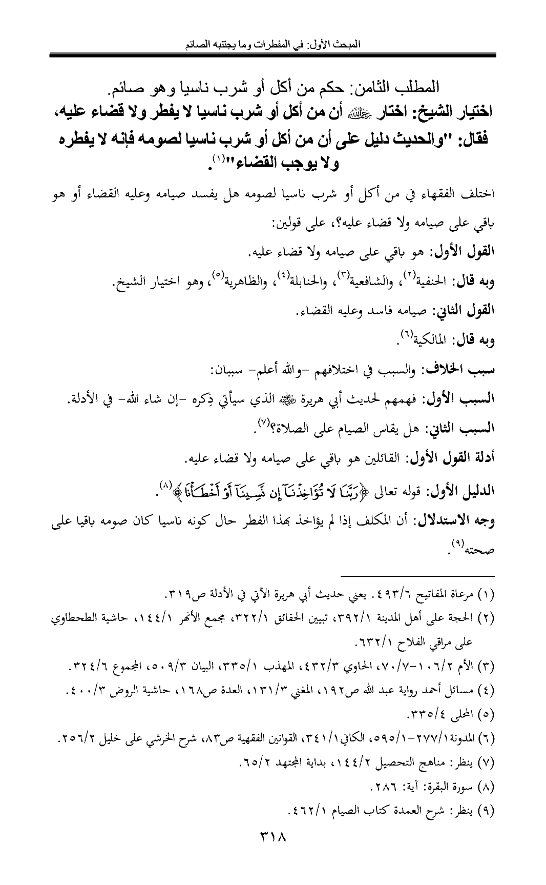 المطلب الثامن: حكم من أكل أو شرب ناسيا وهو صائم.