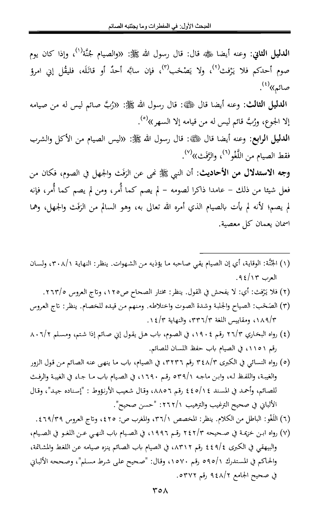 (¬4) رواه البخاري 3/ 26 رقم 1904, في الصوم, باب هل يقول إني صائم إذا شتم, ومسلم 2/ 806 رقم 1151, في الصيام باب حفظ اللسان للصائم.