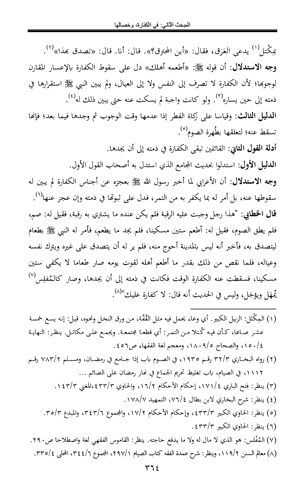 (¬2) رواه البخاري 3/ 32 رقم 1935, في الصوم باب إذا جامع في رمضان, ومسلم 2/ 783 رقم 1112, في الصيام, باب تغليظ تحريم الجماع في نهار رمضان على الصائم ...