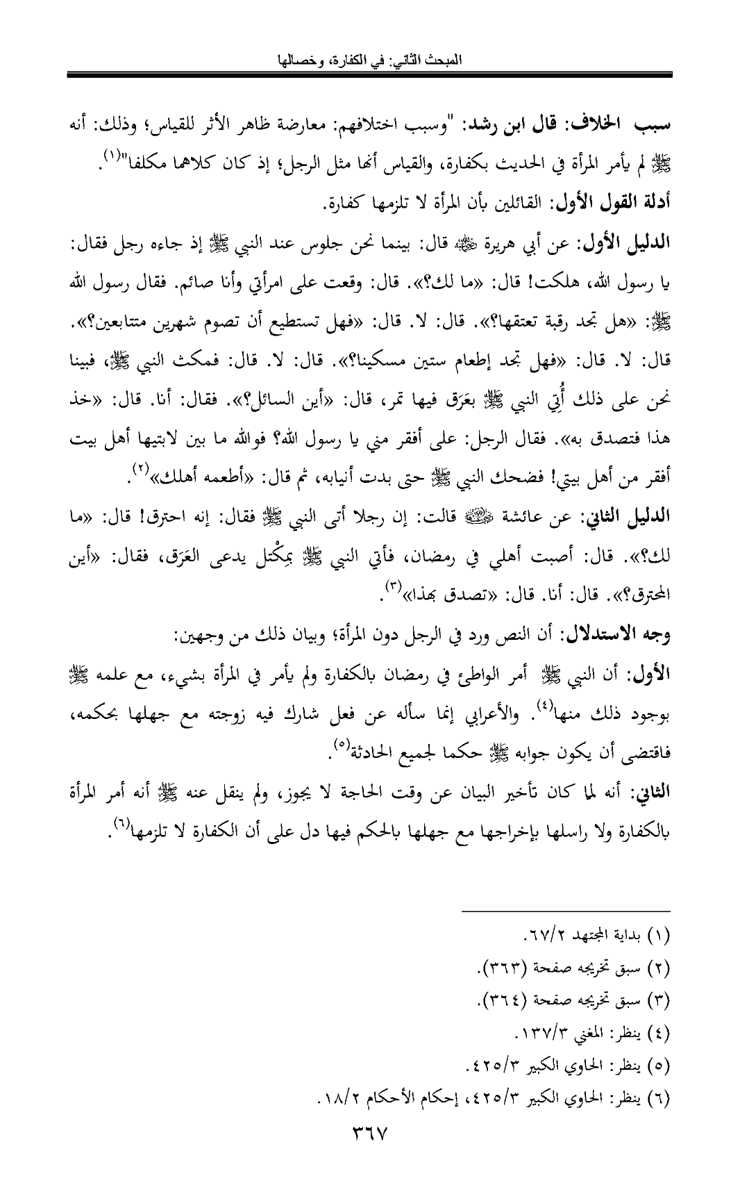 الثاني: أنه لمّا كان تأخير البيان عن وقت الحاجة لا يجوز، ولم ينقل عنه - صلى الله عليه وسلم - أنه أمر المرأة بالكفارة ولا راسلها بإخراجها مع جهلها بالحكم فيها دل على أن الكفارة لا تلزمها (¬6).