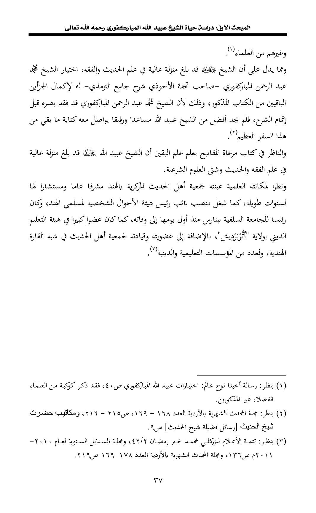 (¬1) ينظر: رسالة أخينا نوح عالم: اختيارات عبيد الله المباركفوري ص 40, فقد ذكر كوكبة من العلماء الفضلاء غير المذكورين.