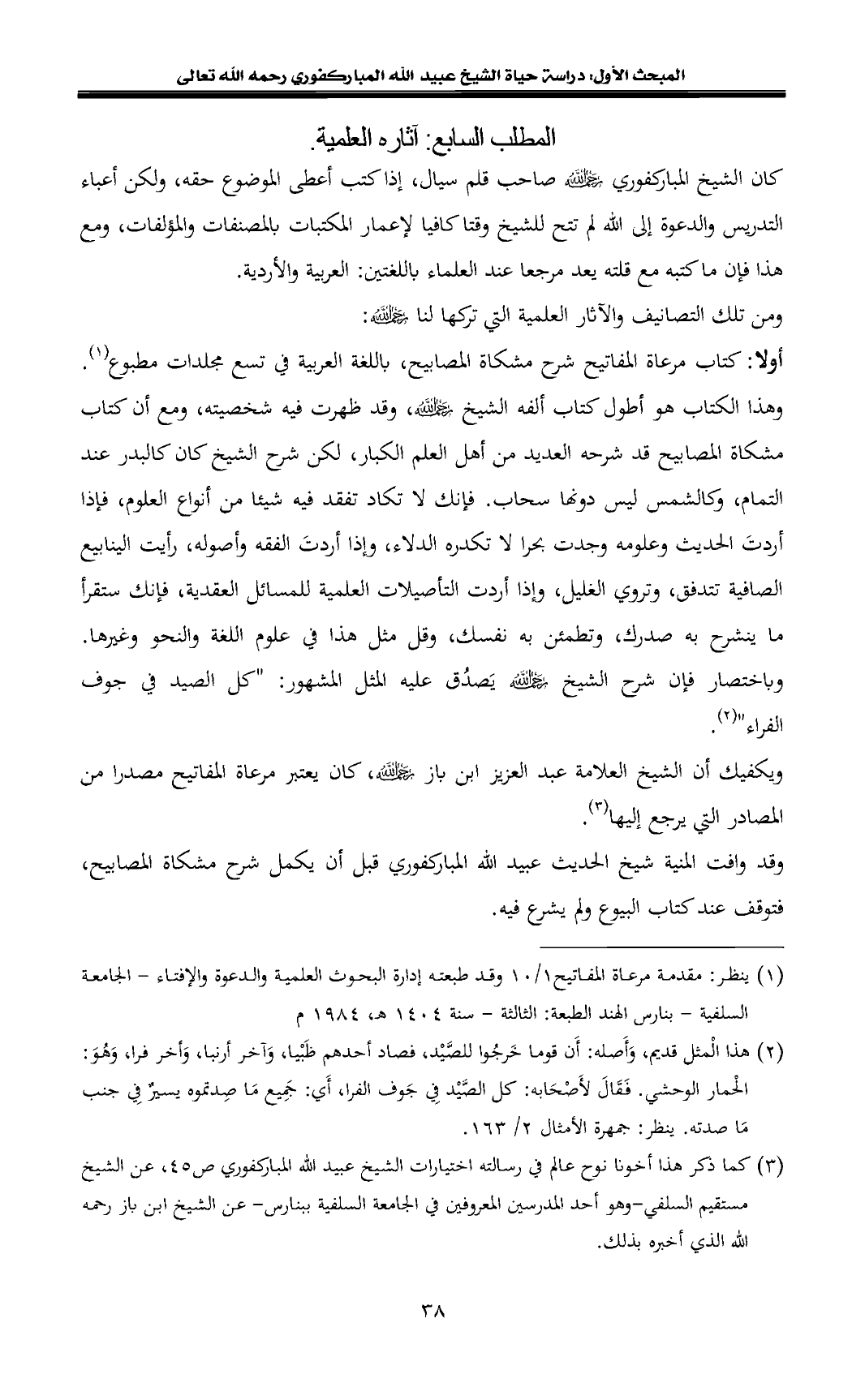 (¬1) ينظر: مقدمة مرعاة المفاتيح 1/ 10 وقد طبعته إدارة البحوث العلمية والدعوة والإفتاء - الجامعة السلفية - بنارس الهند الطبعة: الثالثة - سنة 1404 هـ، 1984 م