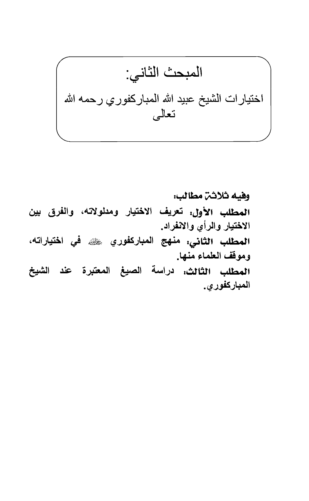 المبحث الثاني: اختيارات الشيخ عبيد الله المباركفوري رحمه الله تعالى