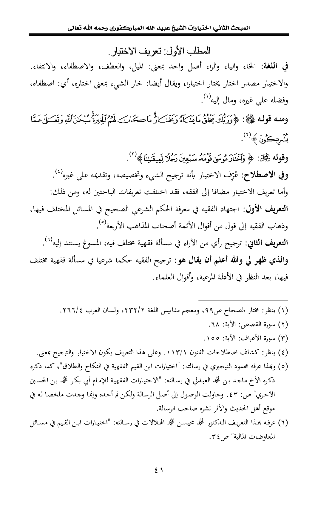 (¬4) ينظر: كشاف اصطلاحات الفنون 1/ 113. وعلى هذا التعريف يكون الاختيار والترجيح بمعنى.