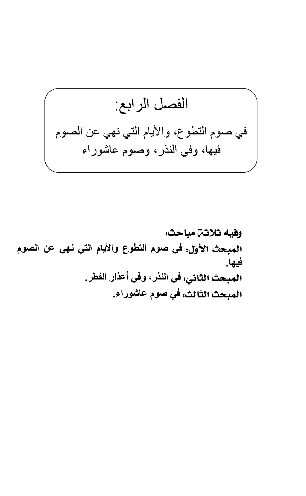 الفصل الرابع: في صوم التطوع، والأيام التي نهي عن الصوم فيها، وفي النذر، وصوم عاشوراء
