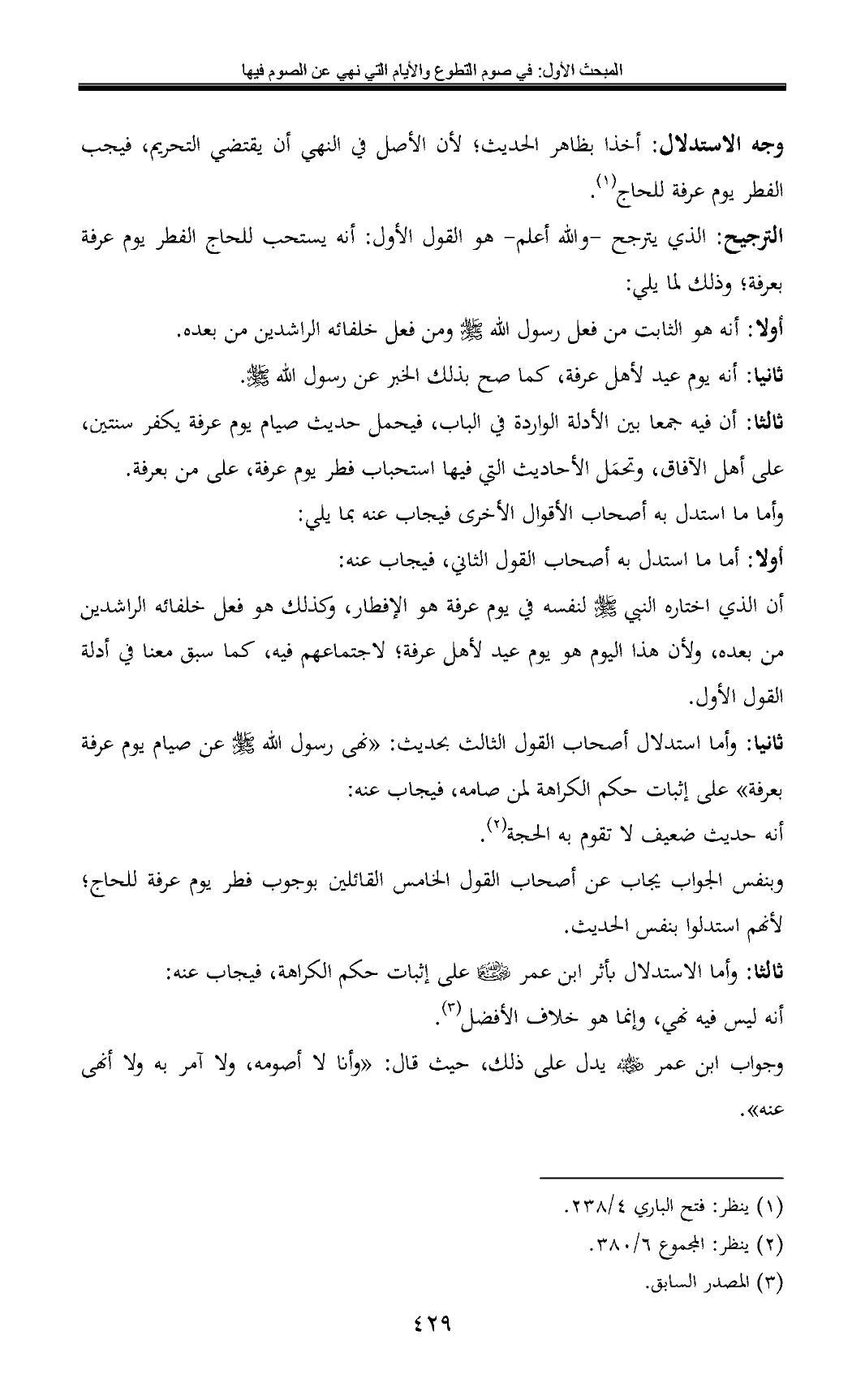 ثانيا: وأما استدلال أصحاب القول الثالث بحديث: «نهى رسول الله - صلى الله عليه وسلم - عن صيام يوم عرفة بعرفة» على إثبات حكم الكراهة لمن صامه، فيجاب عنه: