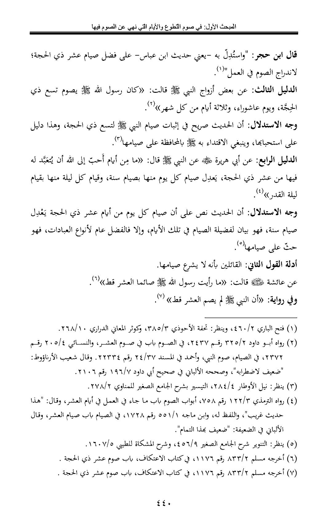 (¬7) أخرجه مسلم 2/ 833 رقم 1176، في كتاب الاعتكاف, باب صوم عشر ذي الحجة.