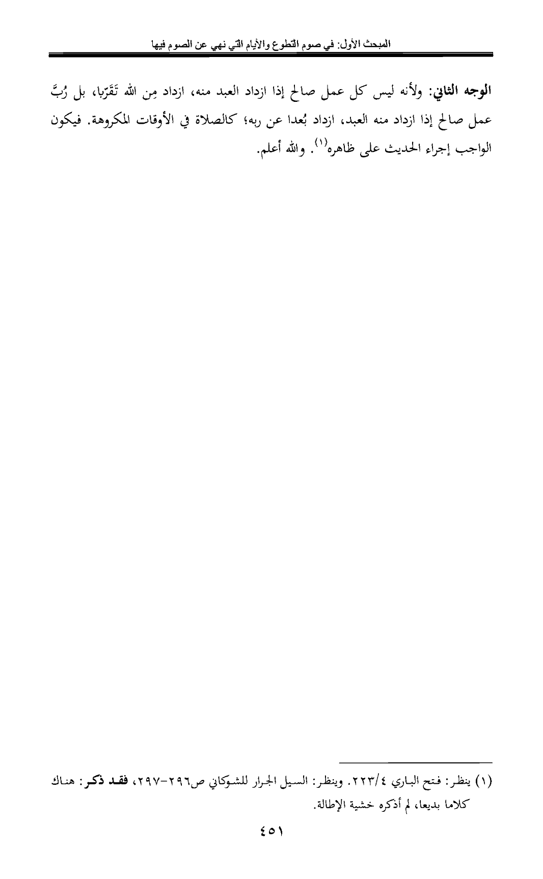 (¬1) ينظر: فتح الباري 4/ 223. وينظر: السيل الجرار للشوكاني ص 296 - 297, فقد ذكر: هناك كلاما بديعا، لم أذكره خشية الإطالة.