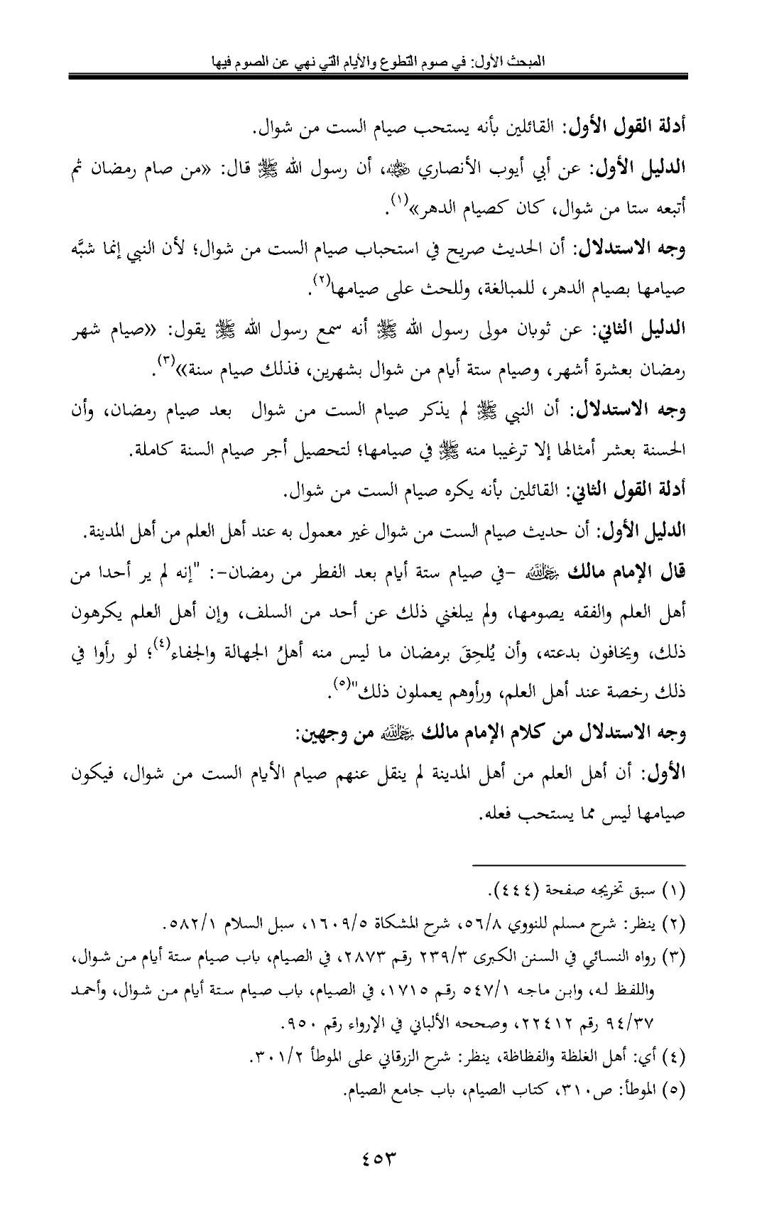 (¬3) رواه النسائي في السنن الكبرى 3/ 239 رقم 2873, في الصيام, باب صيام ستة أيام من شوال, واللفظ له, وابن ماجه 1/ 547 رقم 1715, في الصيام, باب صيام ستة أيام من شوال, وأحمد 37/ 94 رقم 22412, وصححه الألباني في الإرواء رقم 950.