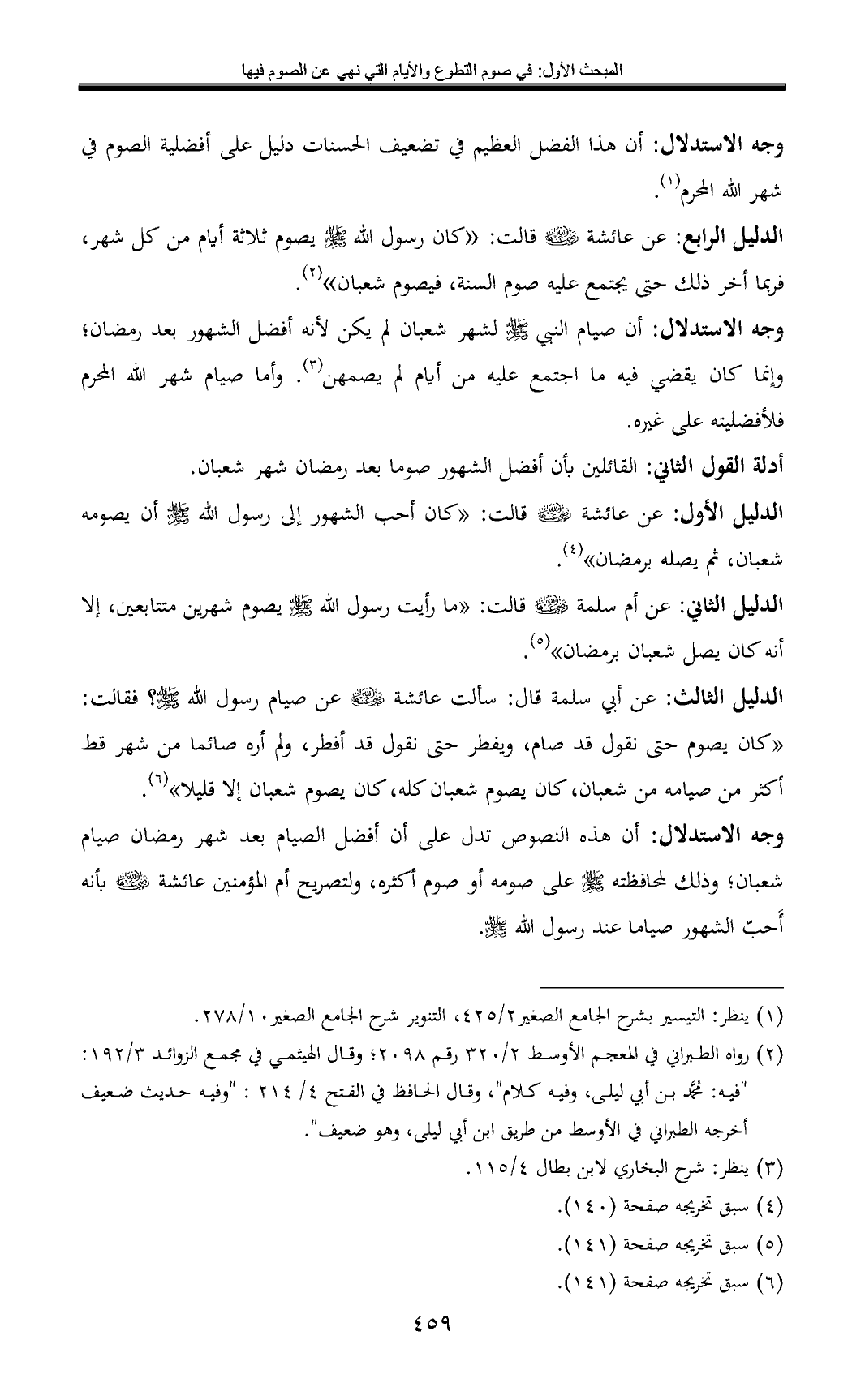 وجه الاستدلال: أن هذه النصوص تدل على أن أفضل الصيام بعد شهر رمضان صيام شعبان؛ وذلك لمحافظته - صلى الله عليه وسلم - على صومه أو صوم أكثره، ولتصريح أم المؤمنين عائشة - رضي الله عنها - بأنه أَحبّ الشهور صياما عند رسول الله - صلى الله عليه وسلم -.