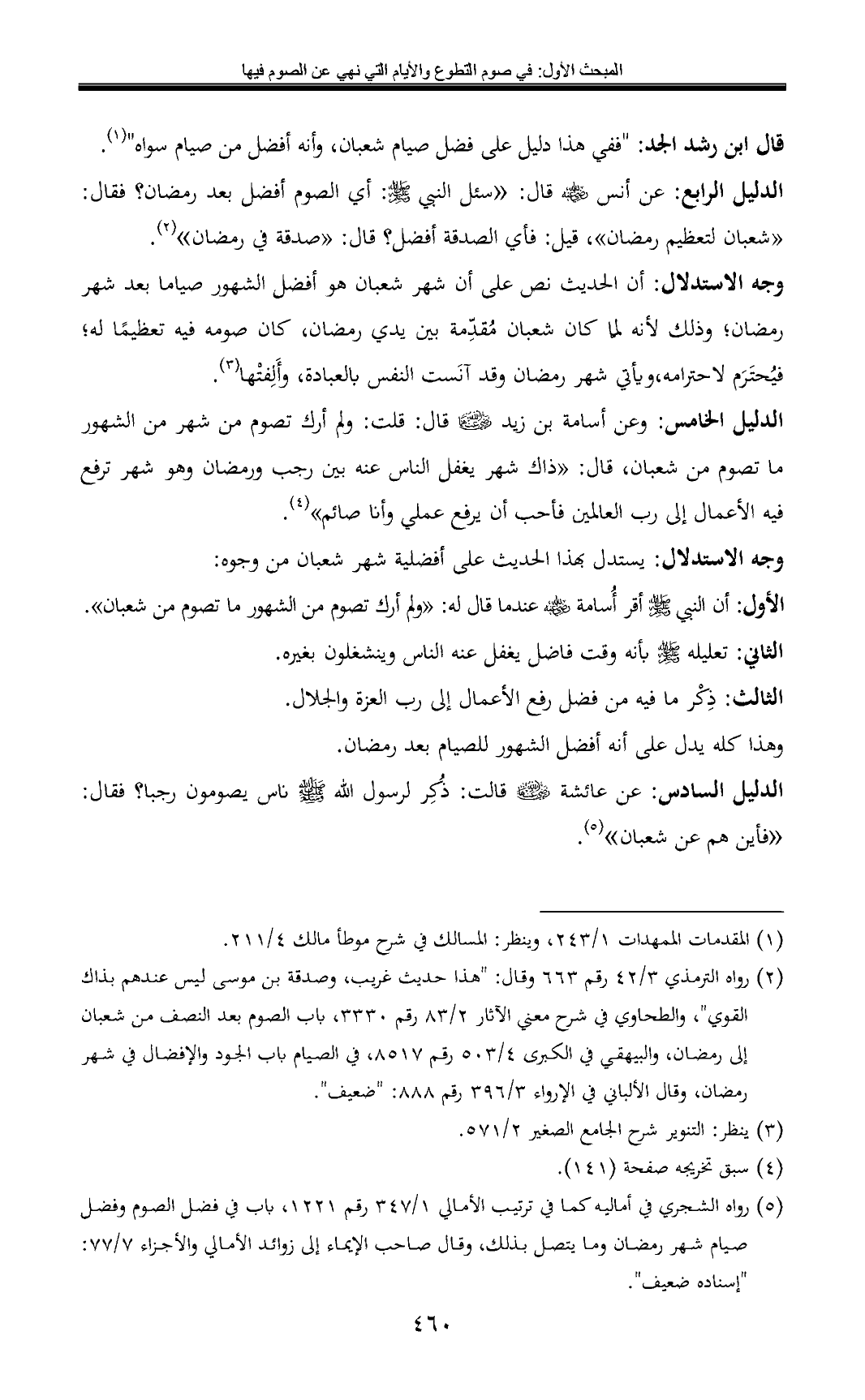 وجه الاستدلال: يستدل بهذا الحديث على أفضلية شهر شعبان من وجوه: