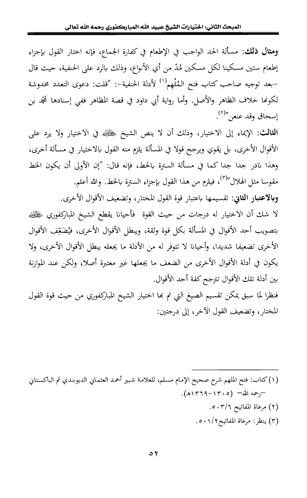 فنظرا لما سبق يمكن تقسيم الصيغ التي تم بها اختيار الشيخ المباركفوري من حيث قوة القول المختار, وتضعيف القول الآخر, إلى درجتين: