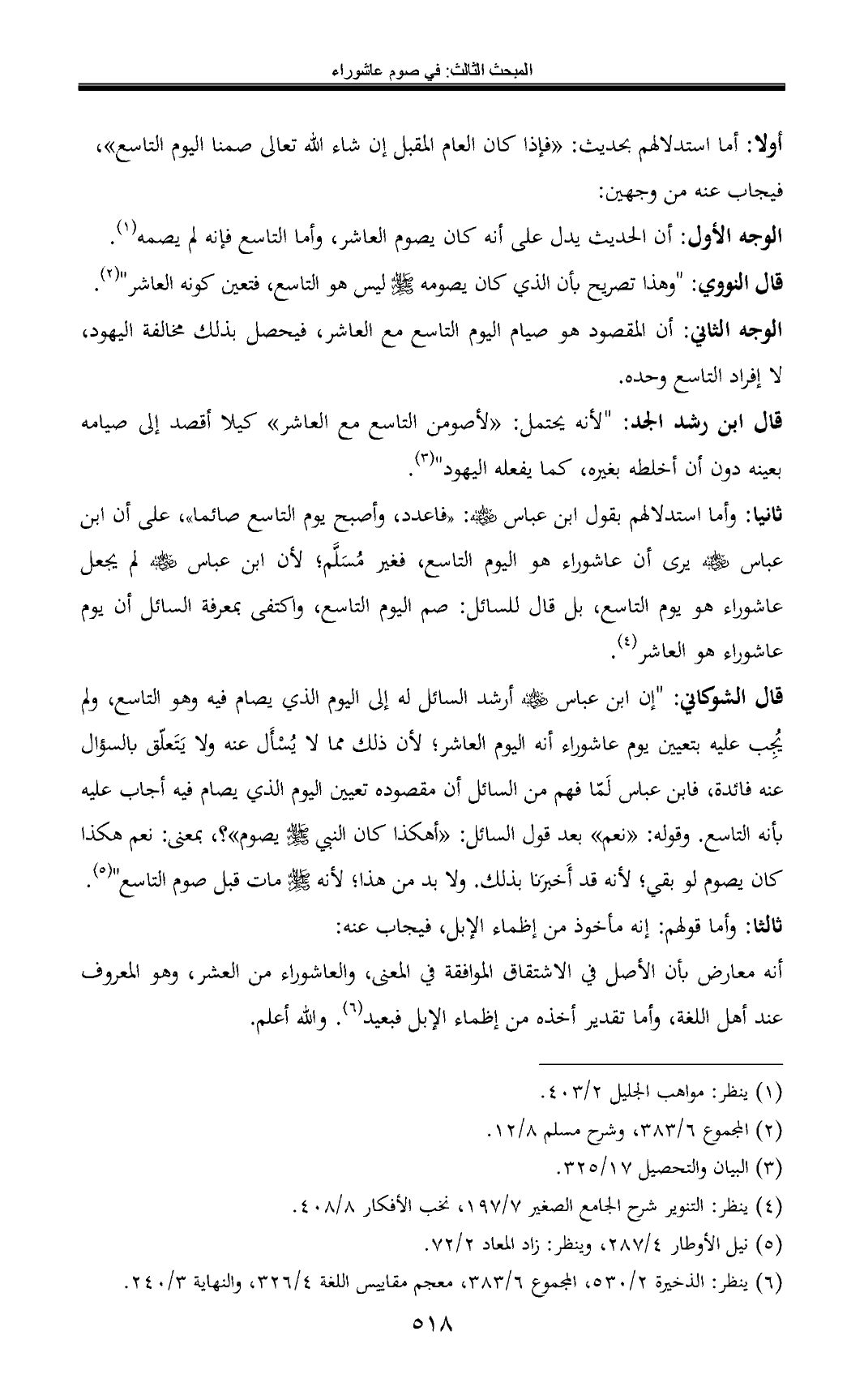 (¬6) ينظر: الذخيرة 2/ 530، المجموع 6/ 383، معجم مقاييس اللغة 4/ 326، والنهاية 3/ 240.