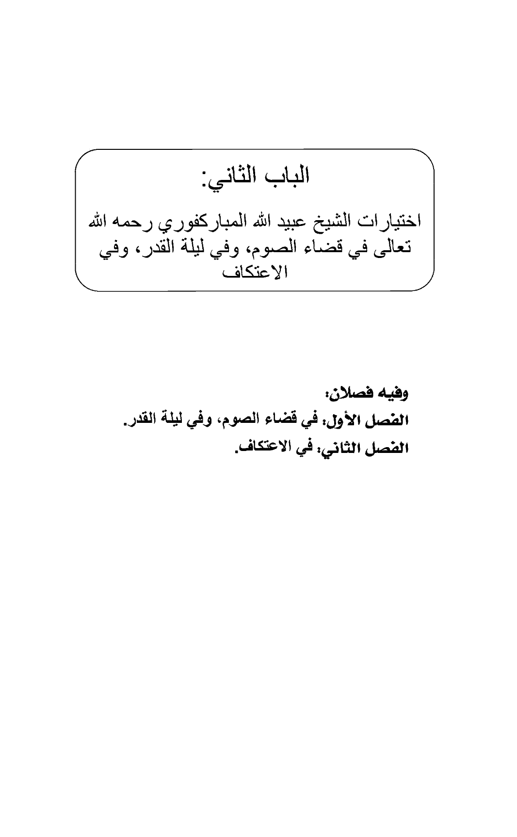 الباب الثاني: اختيارات الشيخ عبيد الله المباركفوري رحمه الله تعالى في قضاء الصوم، وفي ليلة القدر، وفي الاعتكاف