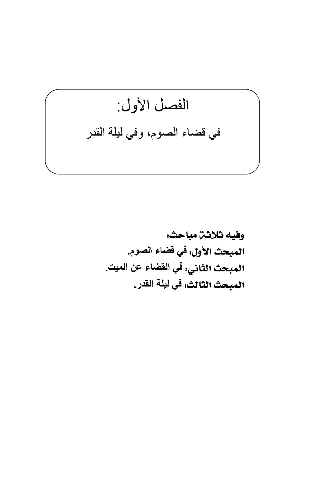 الفصل الأول: في قضاء الصوم، وفي ليلة القدر