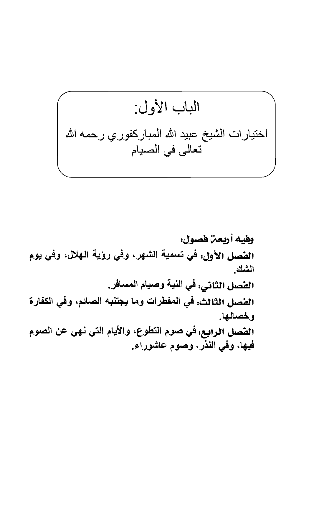 الباب الأول: اختيارات الشيخ عبيد الله المباركفوري رحمه الله تعالى في الصيام