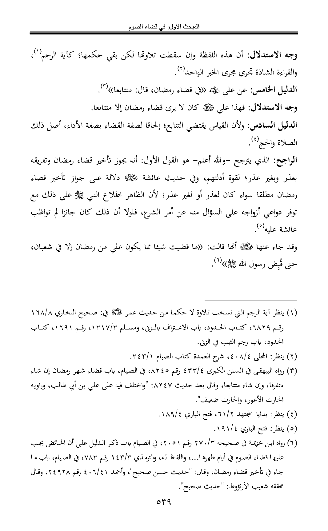 (¬6) رواه ابن خزيمة في صحيحه 3/ 270 رقم 2051, في الصيام باب ذكر الدليل على أن الحائض يجب عليها قضاء الصوم في أيام طهرها ... ، واللفظ له, والترمذي 3/ 143 رقم 783, في الصيام, باب ما جاء في تأخير قضاء رمضان, وقال: "حديث حسن صحيح", وأحمد 41/ 406 رقم 24928, وقال محققه شعيب الأرنؤوط: "حديث صحيح".
