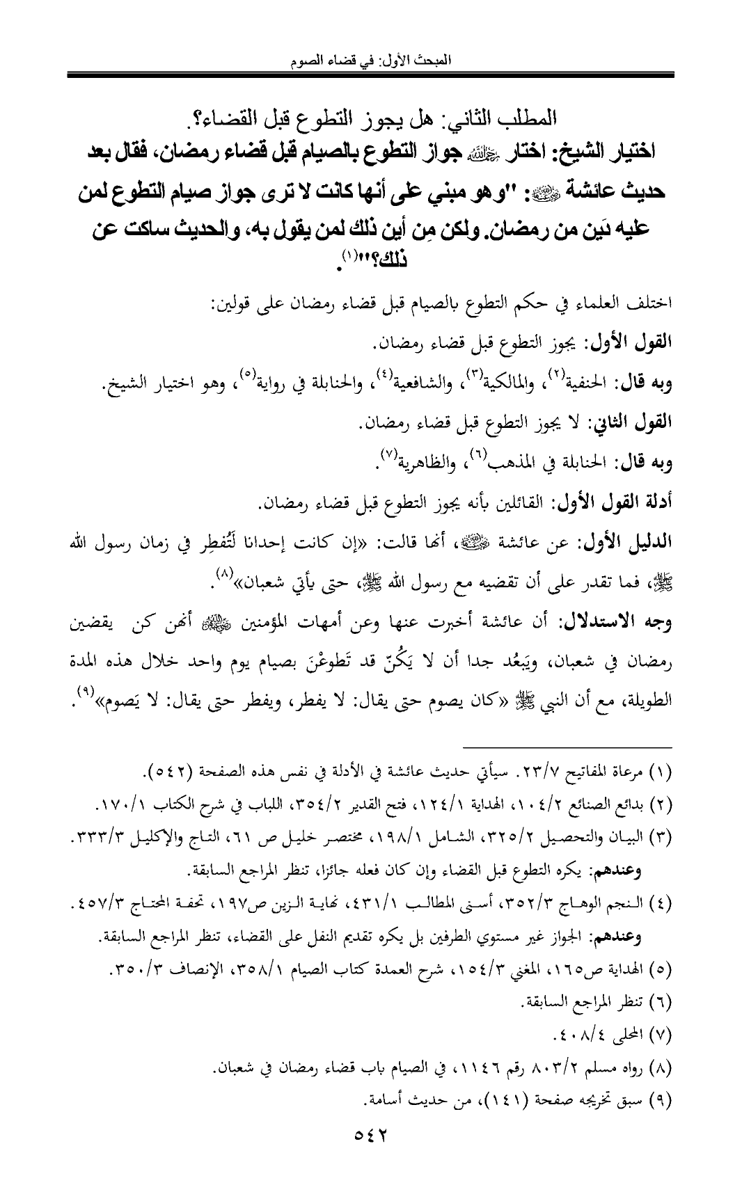 (¬1) مرعاة المفاتيح 7/ 23. سيأتي حديث عائشة في الأدلة في نفس هذه الصفحة (542).