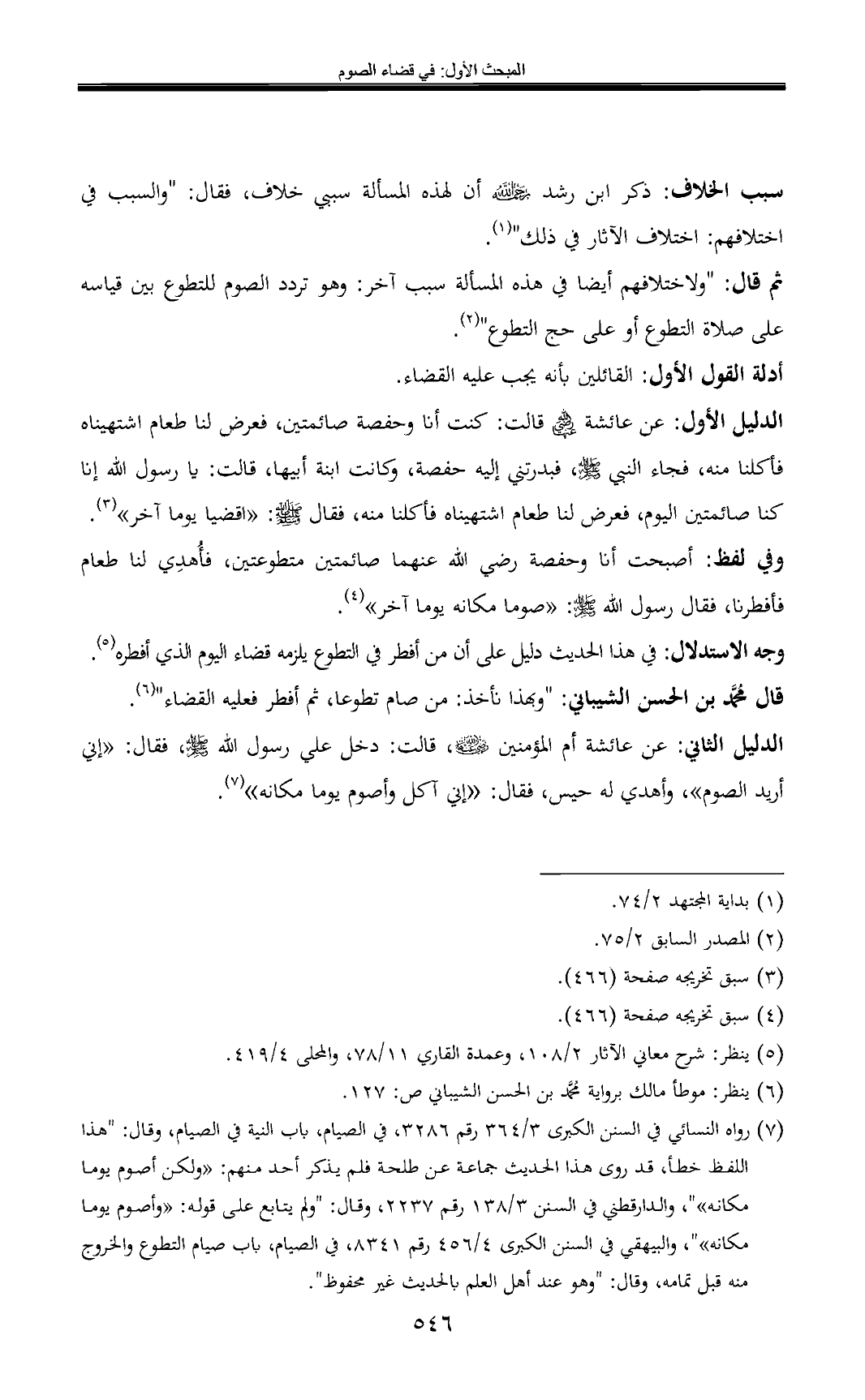 (¬7) رواه النسائي في السنن الكبرى 3/ 364 رقم 3286, في الصيام, باب النية في الصيام, وقال: "هذا اللفظ خطأ، قد روى هذا الحديث جماعة عن طلحة فلم يذكر أحد منهم: «ولكن أصوم يوما مكانه» ", والدارقطني في السنن 3/ 138 رقم 2237, وقال: "ولم يتابع على قوله: «وأصوم يوما مكانه» ", والبيهقي في السنن الكبرى 4/ 456 رقم 8341, في الصيام, باب صيام التطوع والخروج منه قبل تمامه, وقال: "وهو عند أهل العلم بالحديث غير محفوظ".