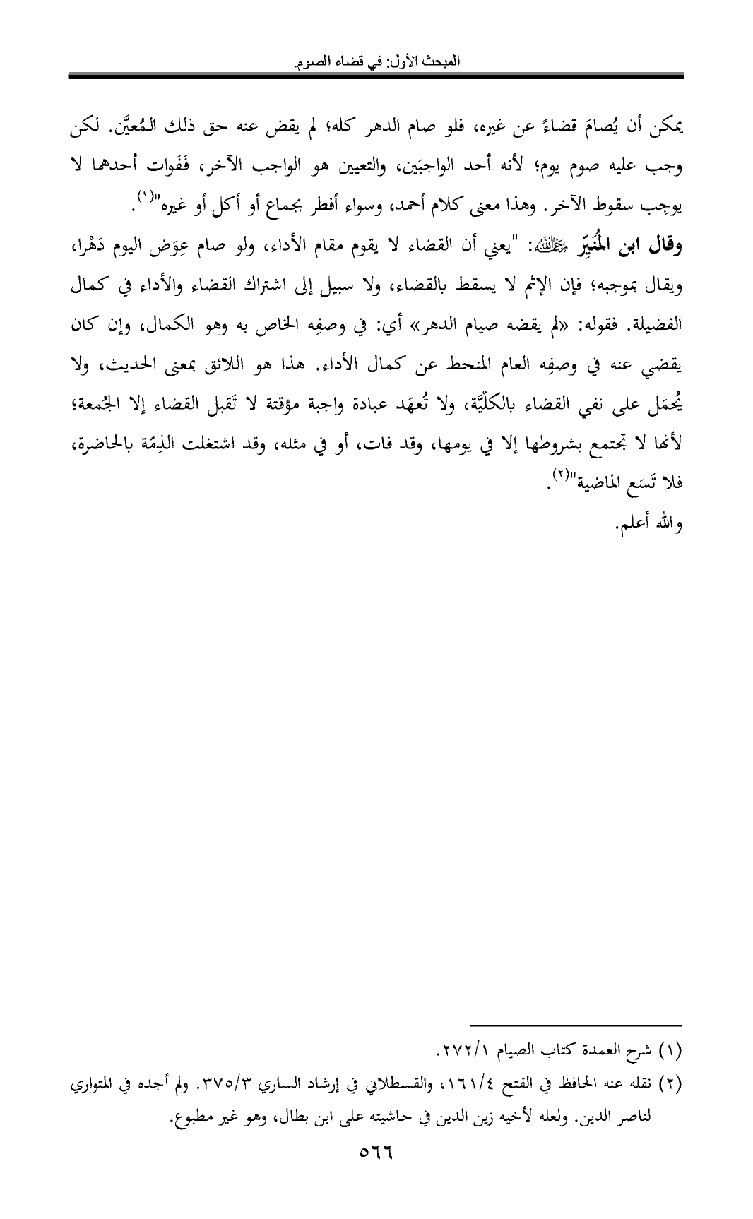 (¬2) نقله عنه الحافظ في الفتح 4/ 161، والقسطلاني في إرشاد الساري 3/ 375. ولم أجده في المتواري لناصر الدين. ولعله لأخيه زين الدين في حاشيته على ابن بطال، وهو غير مطبوع.
