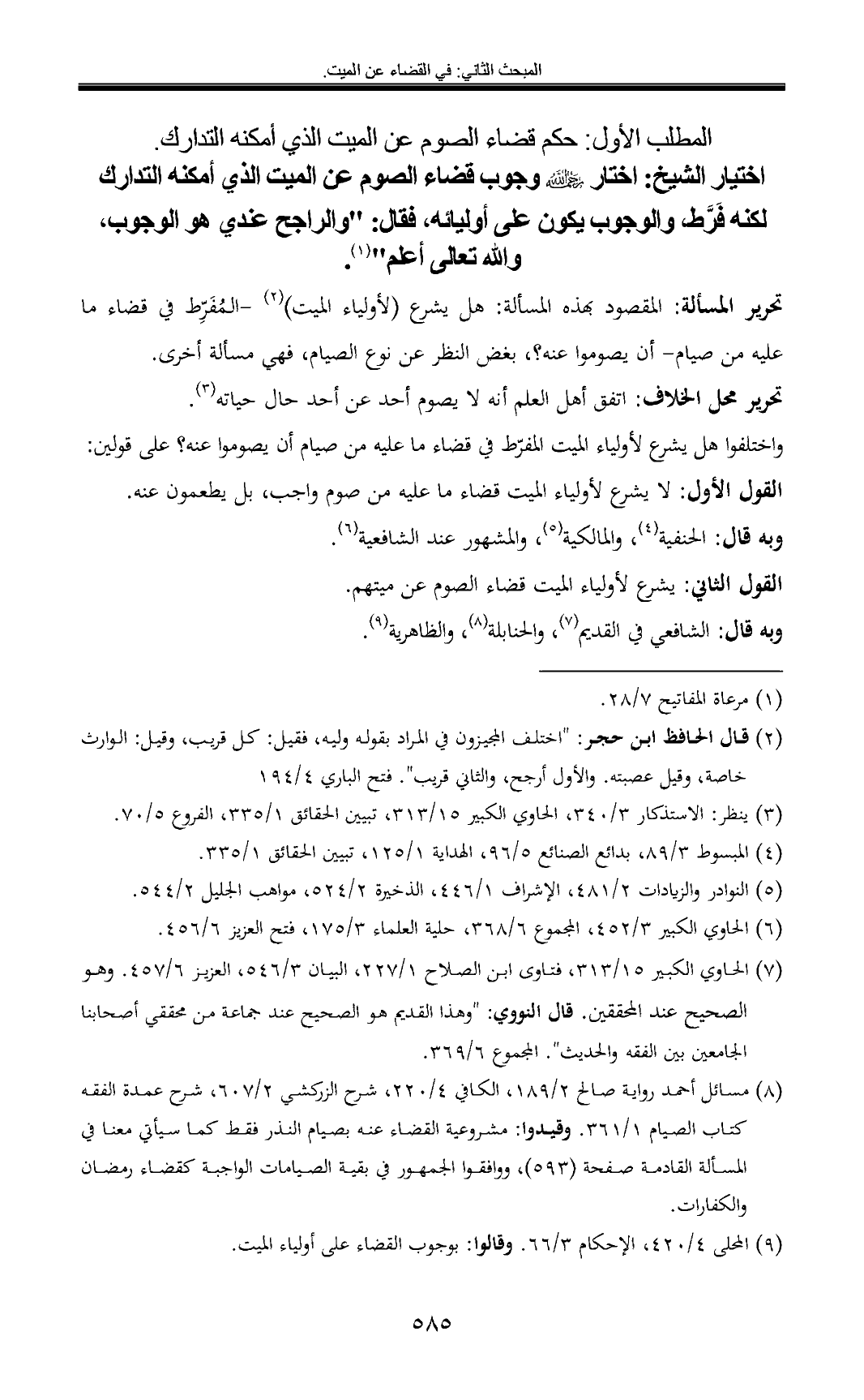 (¬9) المحلى 4/ 420، الإحكام 3/ 66. وقالوا: بوجوب القضاء على أولياء الميت.