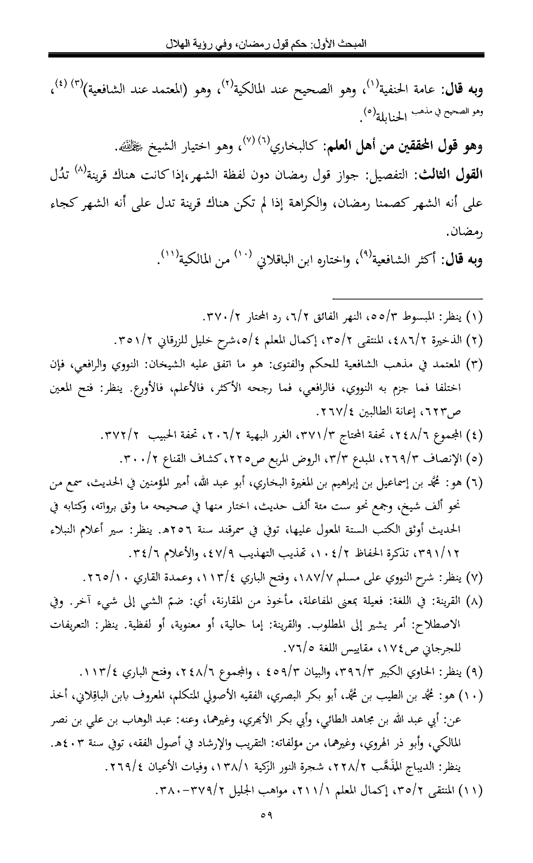 (¬11) المنتقى 2/ 35، إكمال المعلم 1/ 211، مواهب الجليل 2/ 379 - 380.