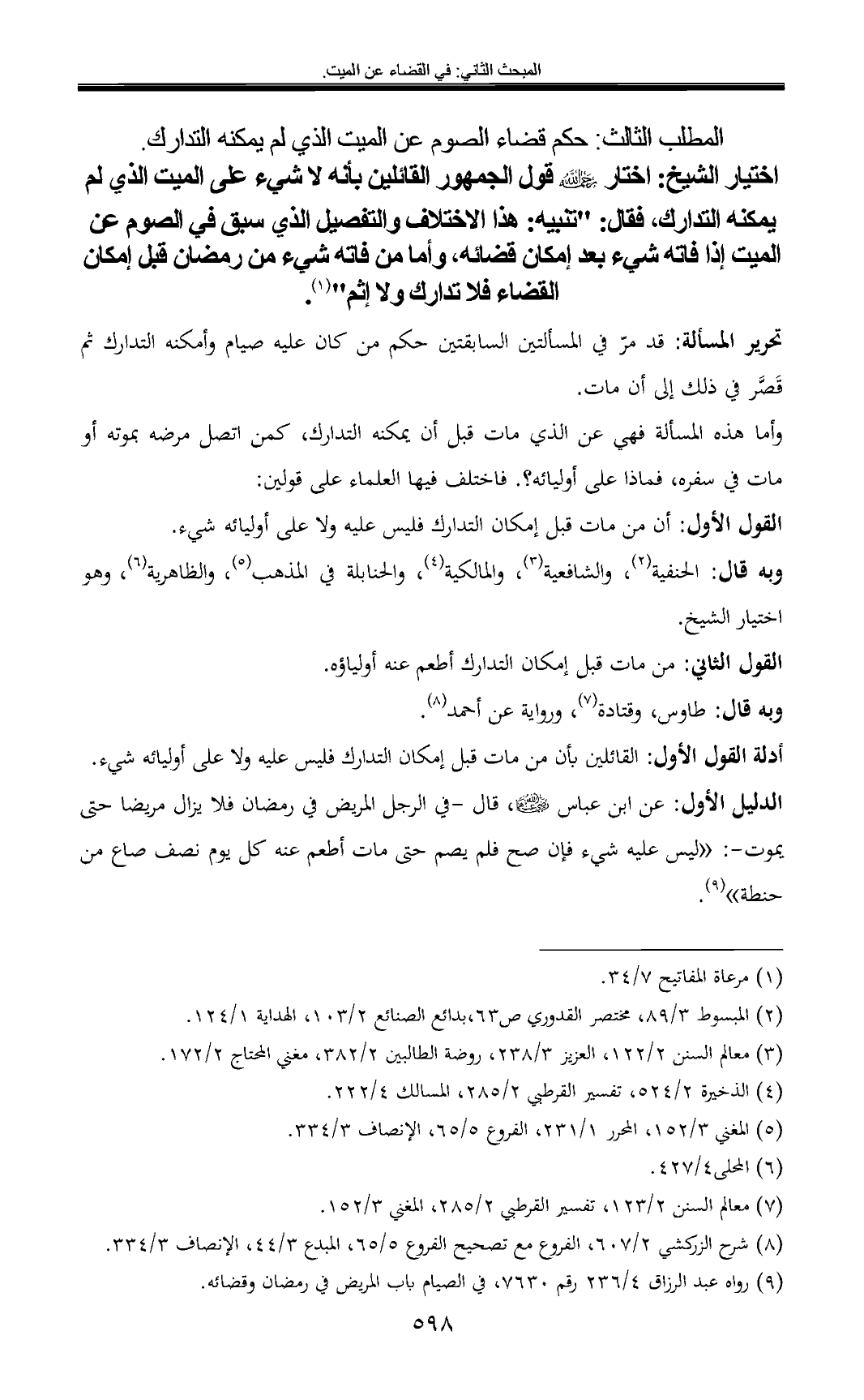 (¬8) شرح الزركشي 2/ 607، الفروع مع تصحيح الفروع 5/ 65، المبدع 3/ 44، الإنصاف 3/ 334.