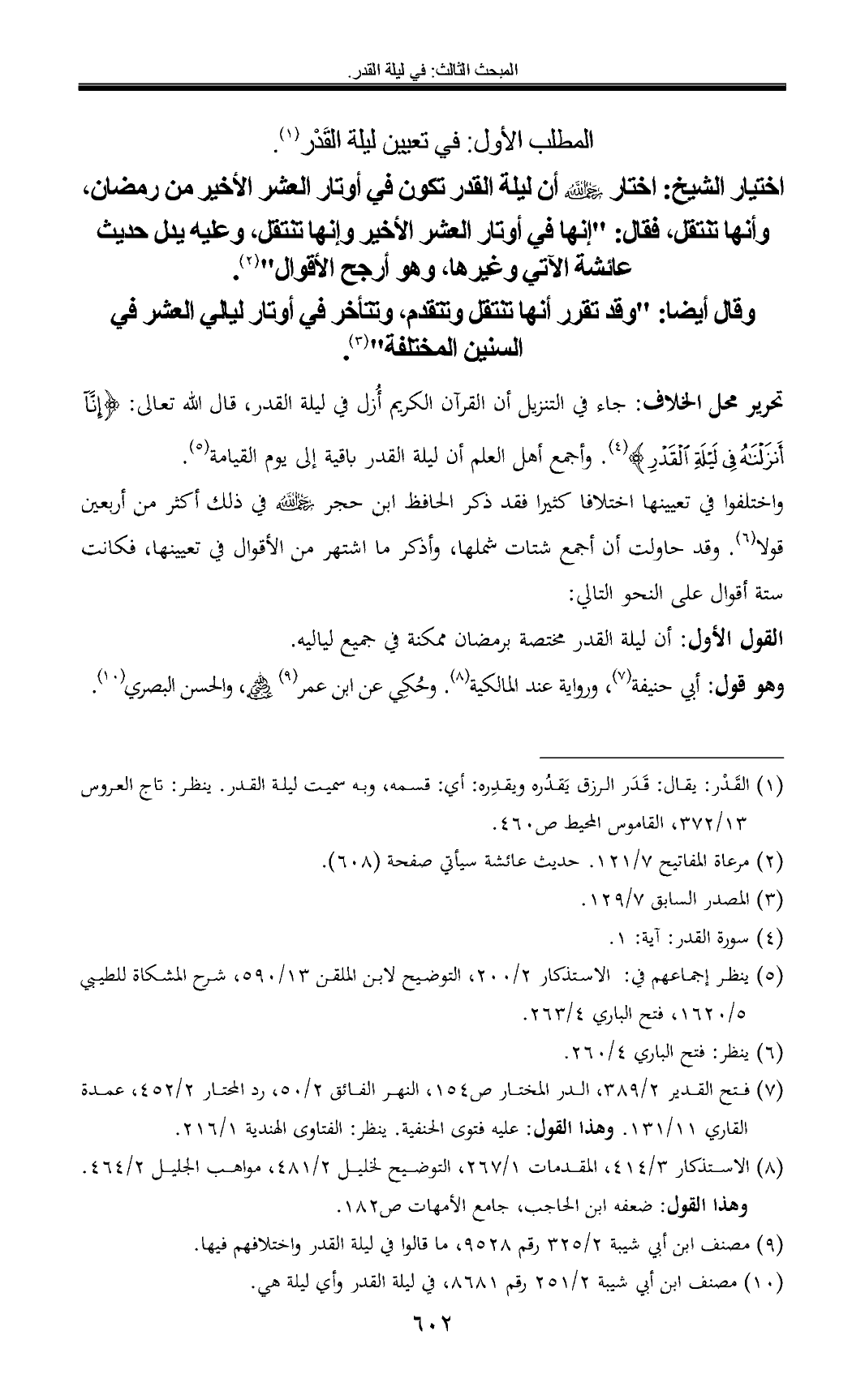 اختيار الشيخ: اختار أن ليلة القدر تكون في أوتار العشر الأخير من رمضان، وأنها تنتقل، فقال: "إنها في أوتار العشر الأخير وإنها تنتقل، وعليه يدل حديث عائشة الآتي وغيرها, وهو أرجح الأقوال" (¬2).