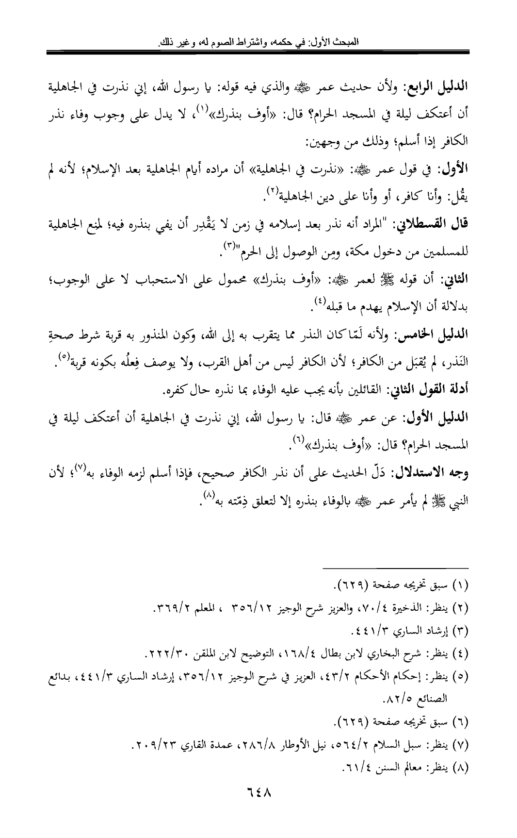 (¬5) ينظر: إحكام الأحكام 2/ 43، العزيز في شرح الوجيز 12/ 356، إرشاد الساري 3/ 441، بدائع الصنائع 5/ 82.