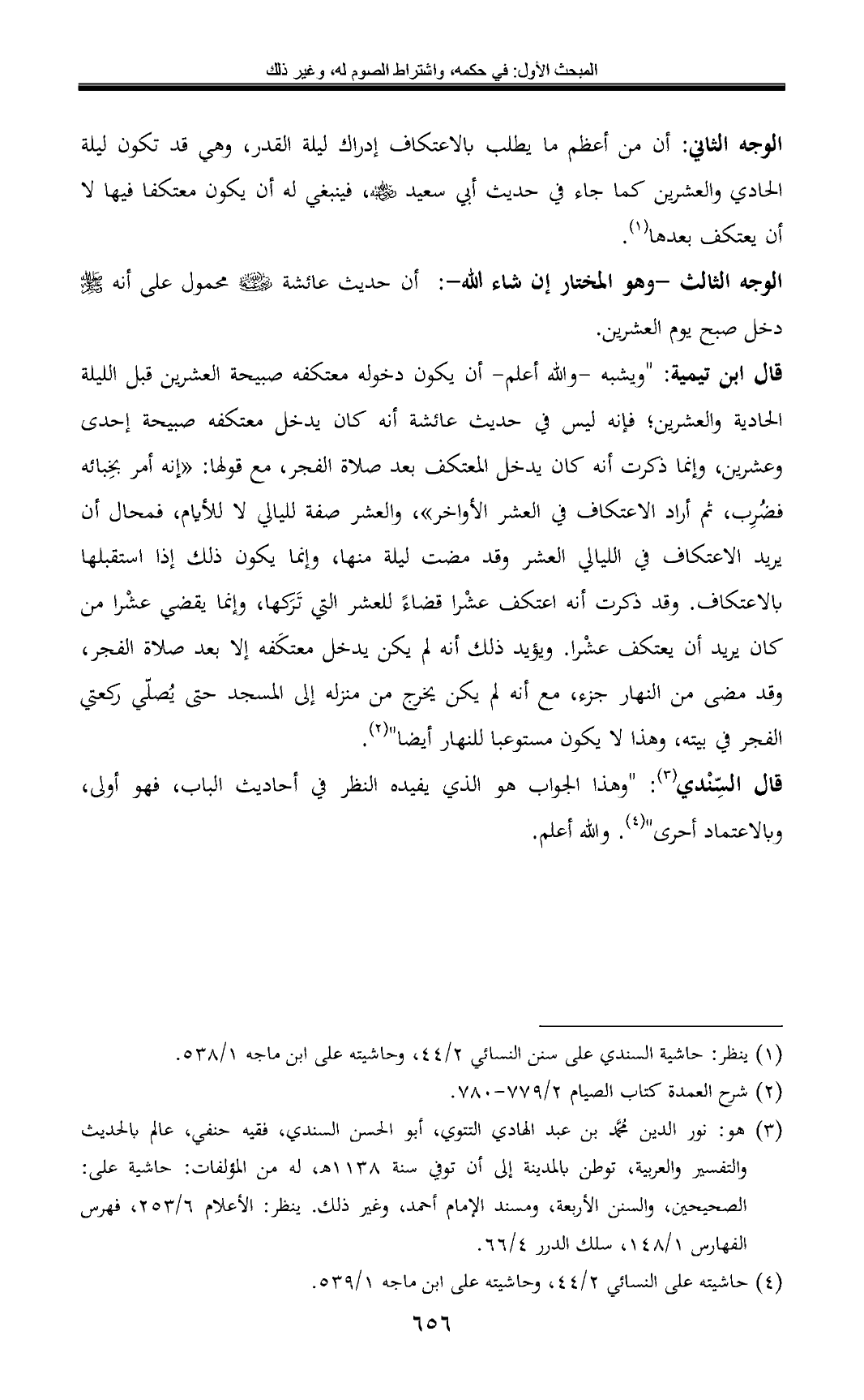 (¬4) حاشيته على النسائي 2/ 44، وحاشيته على ابن ماجه 1/ 539.