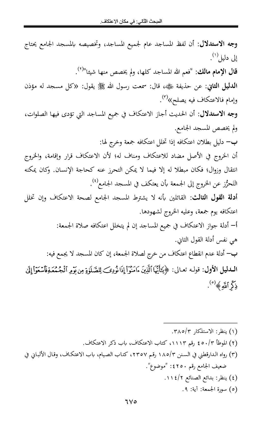 أ- أدلة جواز الاعتكاف في جميع المساجد إن لم يتخلل اعتكافه صلاة الجمعة: