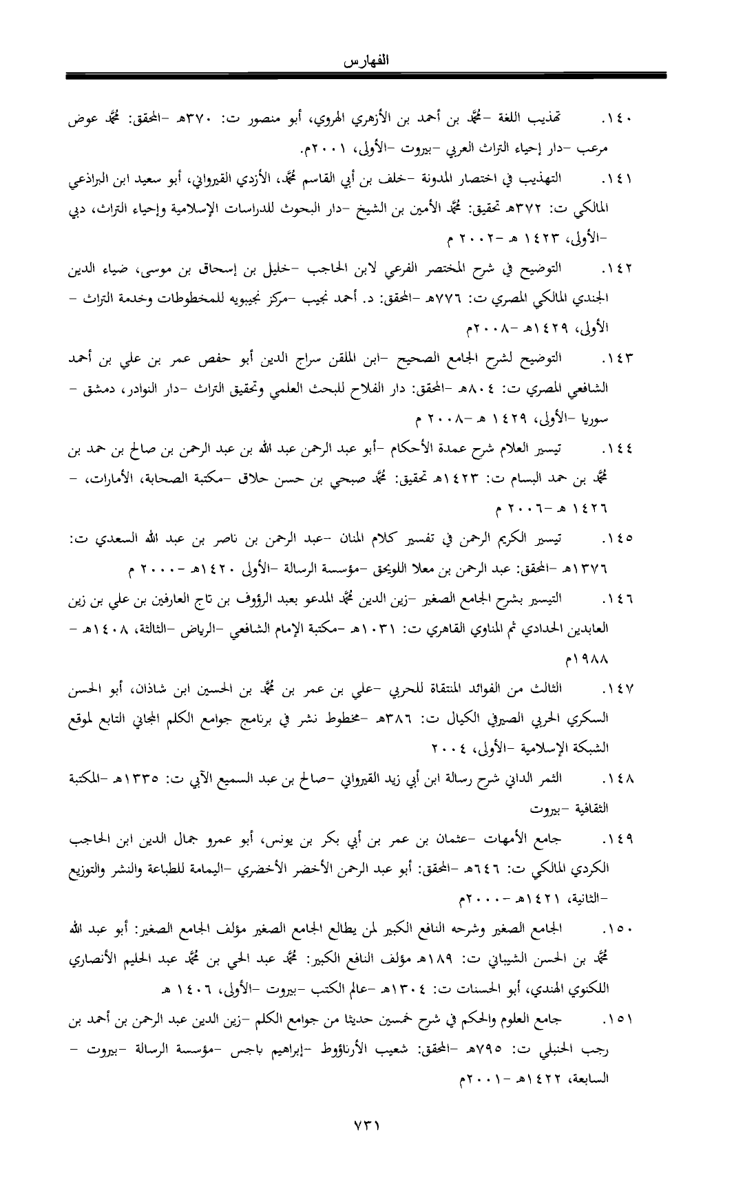 142 - التوضيح في شرح المختصر الفرعي لابن الحاجب -خليل بن إسحاق بن موسى، ضياء الدين الجندي المالكي المصري ت: 776 هـ -المحقق: د. أحمد نجيب -مركز نجيبويه للمخطوطات وخدمة التراث -الأولى، 1429 هـ -2008 م