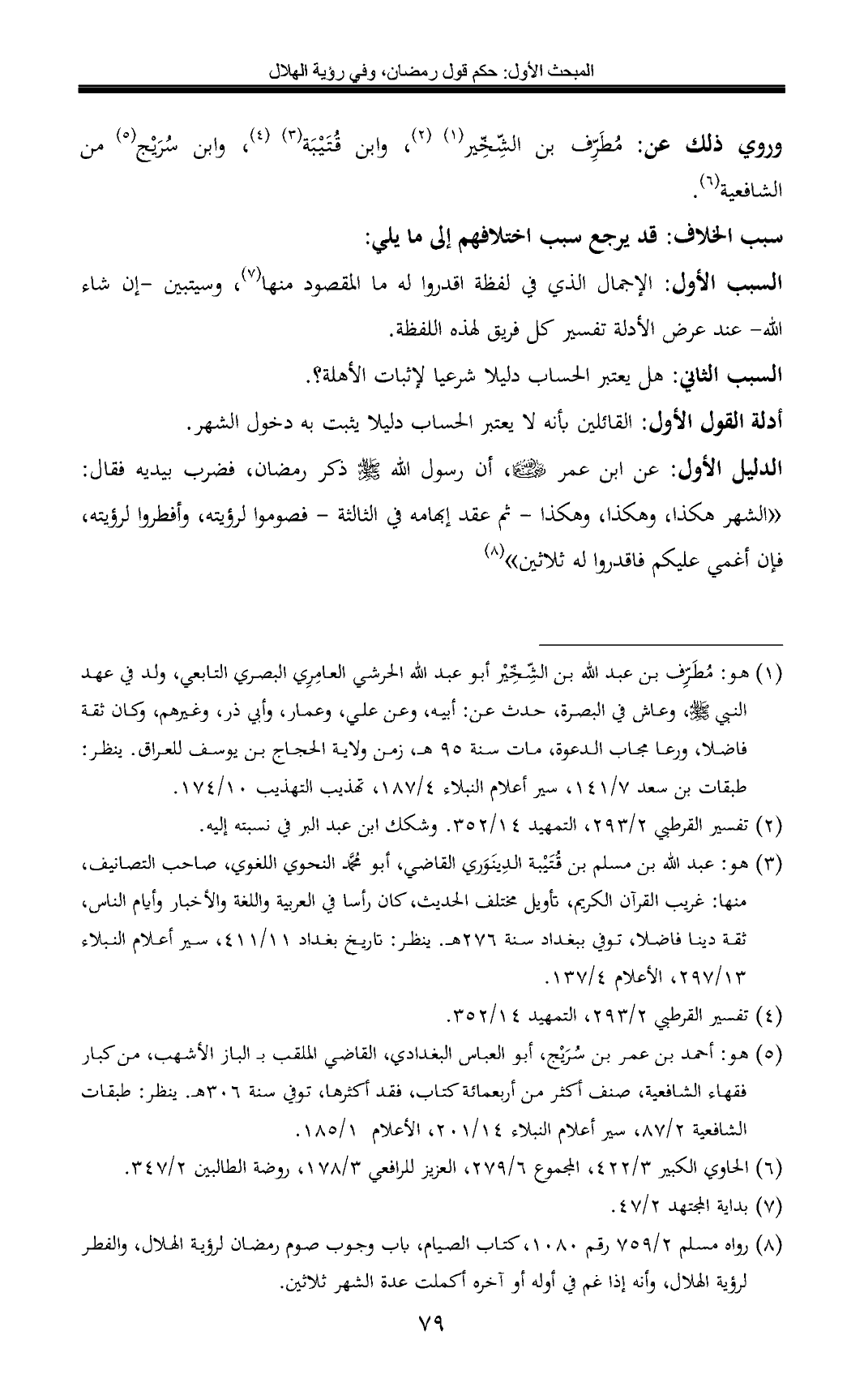 السبب الثاني: هل يعتبر الحساب دليلا شرعيا لإثبات الأهلة؟ .