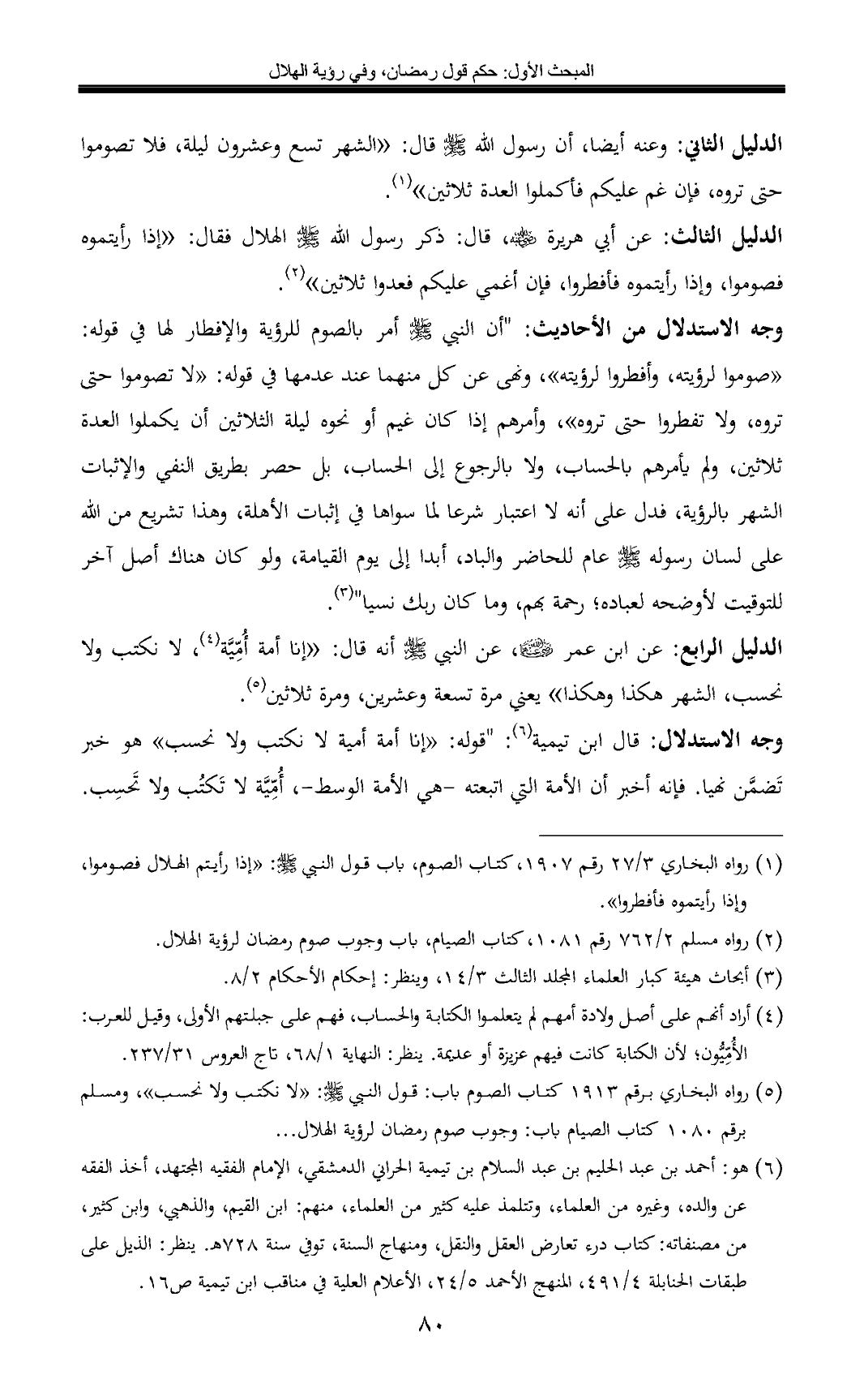 (¬5) رواه البخاري برقم 1913 كتاب الصوم باب: قول النبي - صلى الله عليه وسلم -: «لا نكتب ولا نحسب» , ومسلم برقم 1080 كتاب الصيام باب: وجوب صوم رمضان لرؤية الهلال ...