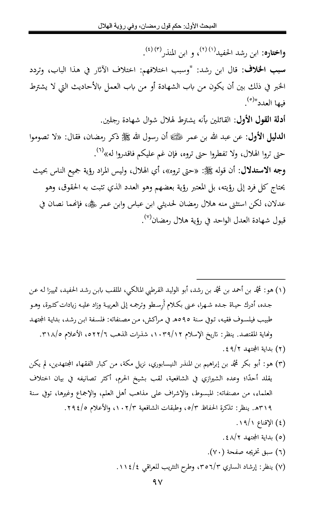واختاره: ابن رشد الحفيد (¬1) (¬2)، وابن المنذر (¬3) (¬4).
