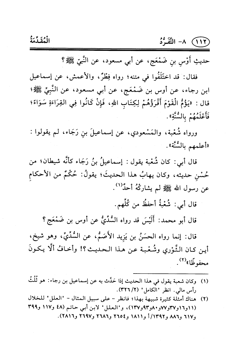 (١) وكان شعبة يقول في هذا الحديث إذا حَدَّث به عن إسماعيل بن رجاء: هو ثُلُثُ رأس مالي. انظر "الكامل" (٢/٣٢٦) .