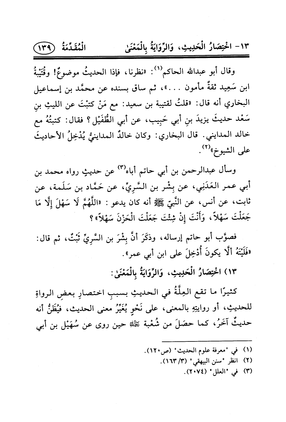 ١٣) اخْتِصَارُ الْحَدِيثِ، وَالرِّوَايَةُ بِالْمَعْنَى: